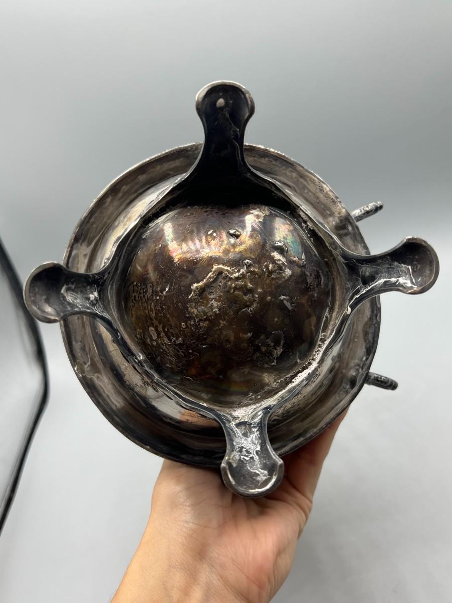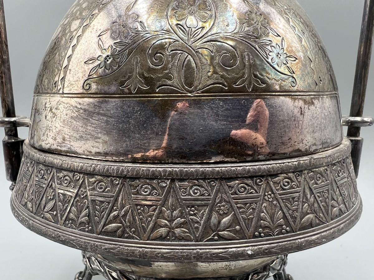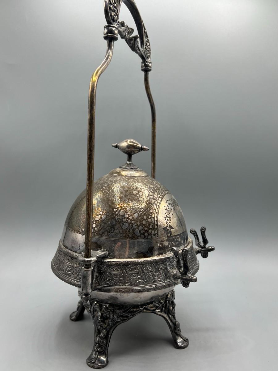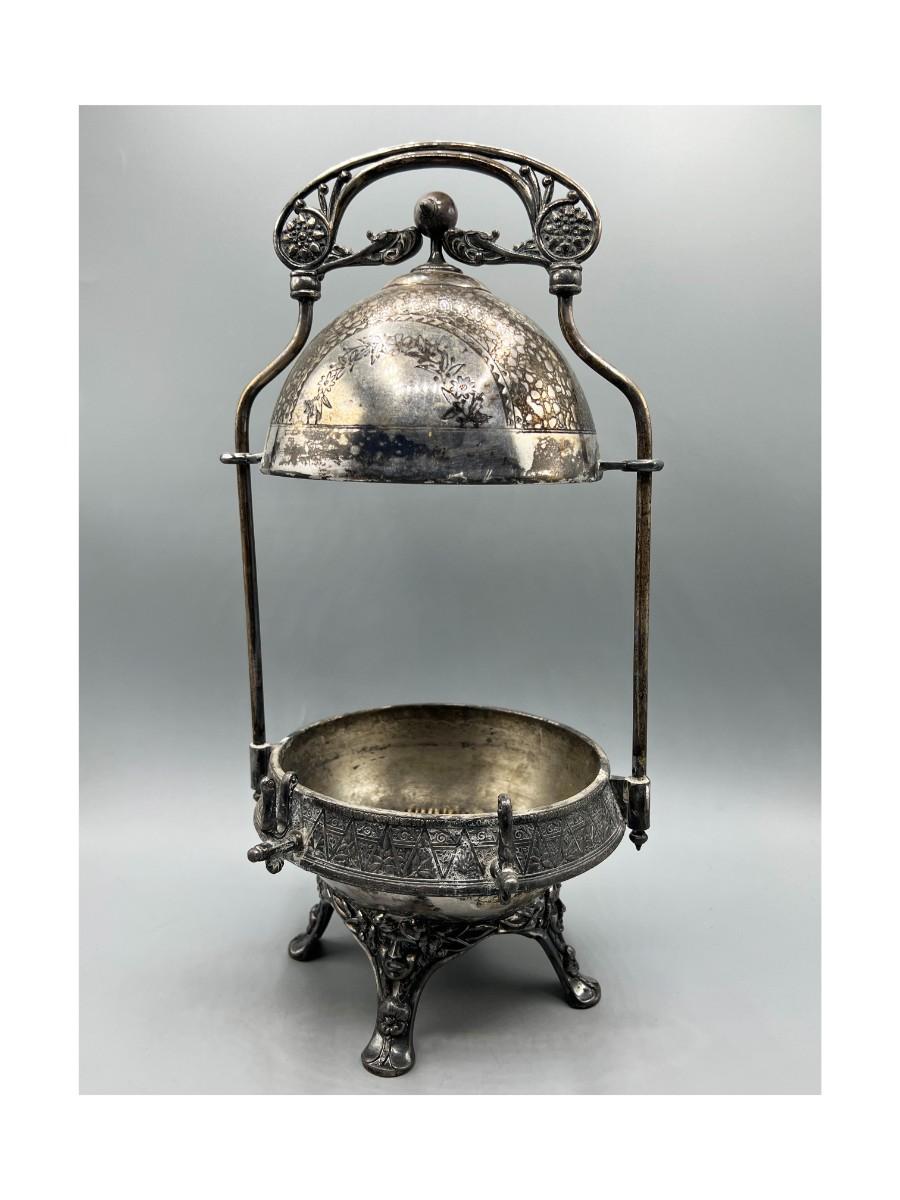 Antique Victorian Silver Plate Gothic Ornate Decorated Covered Butter Dish Centerpiece