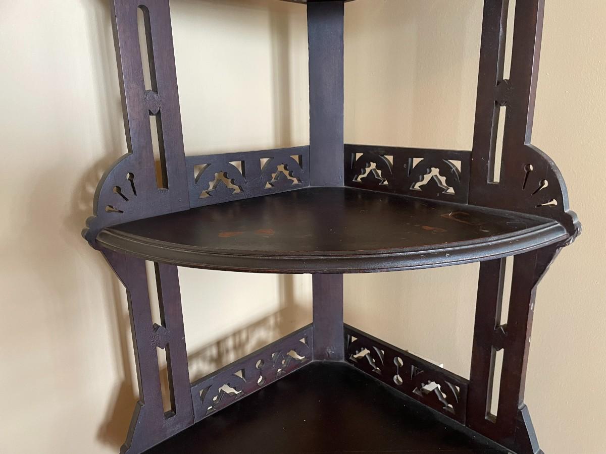 Antique Victorian Solid Wood 5 Tiered Corner Shelf
