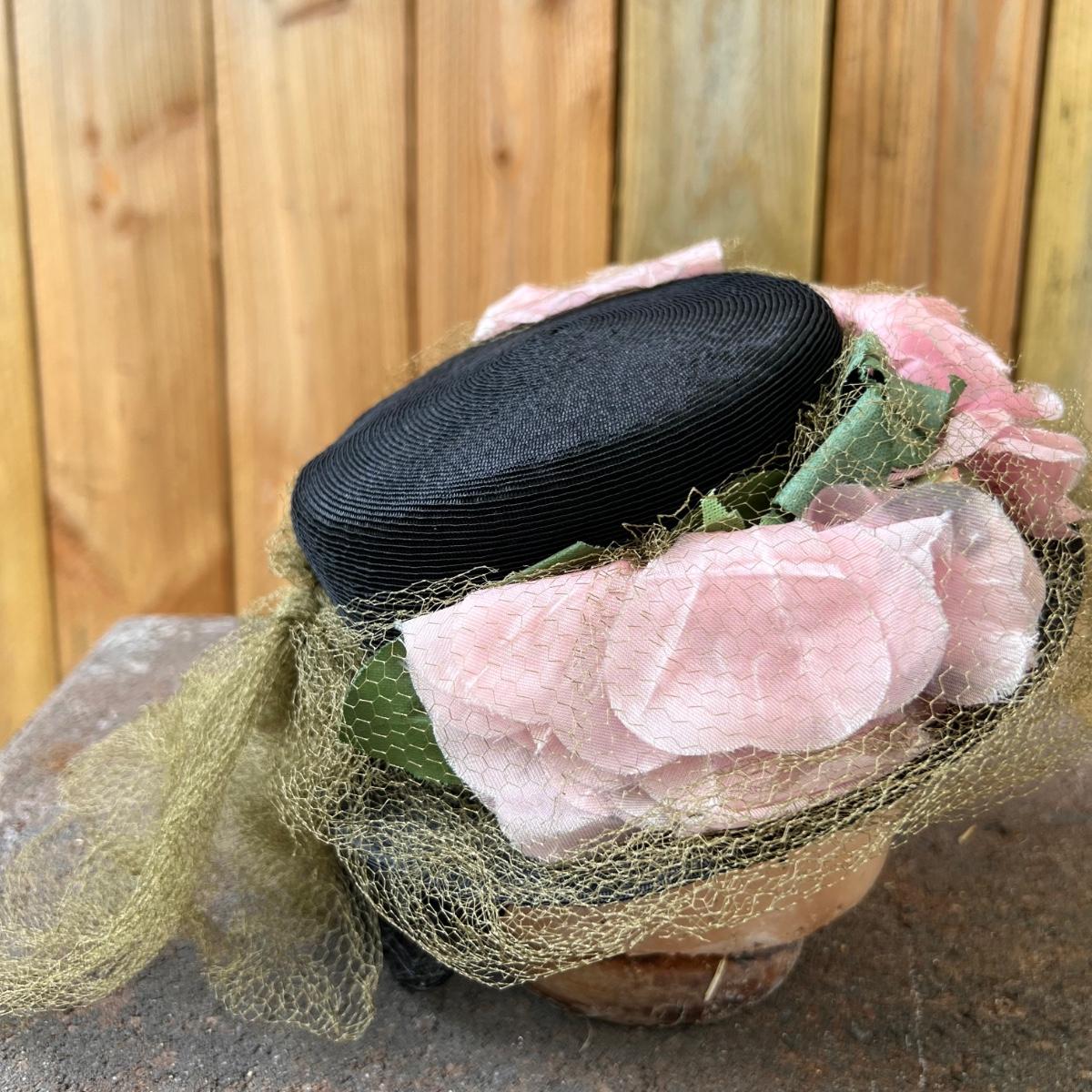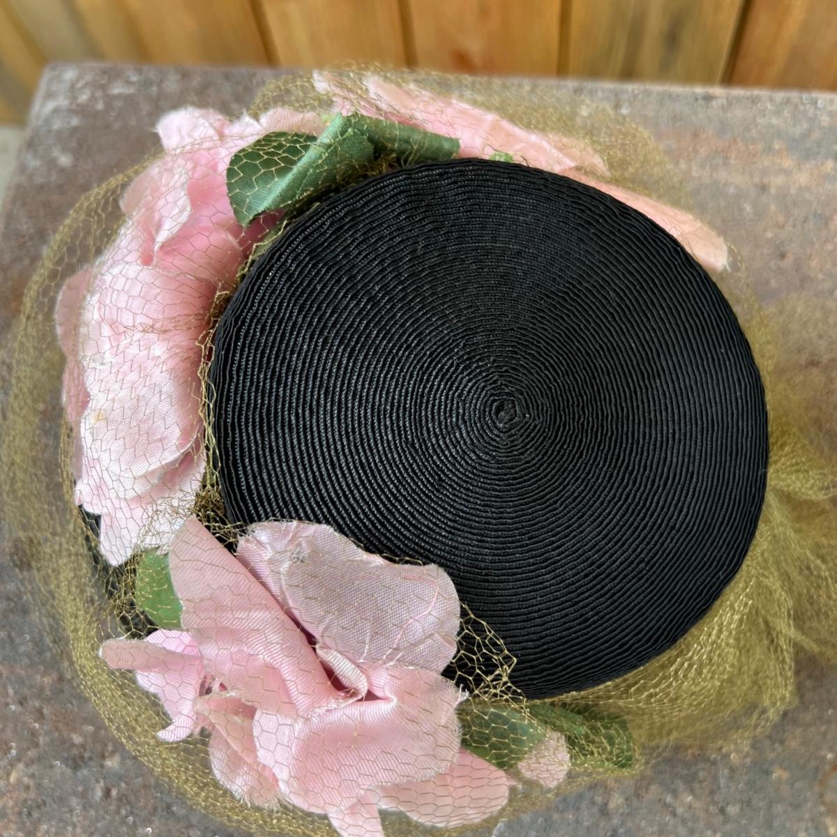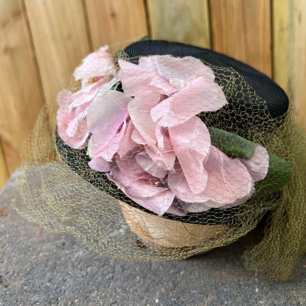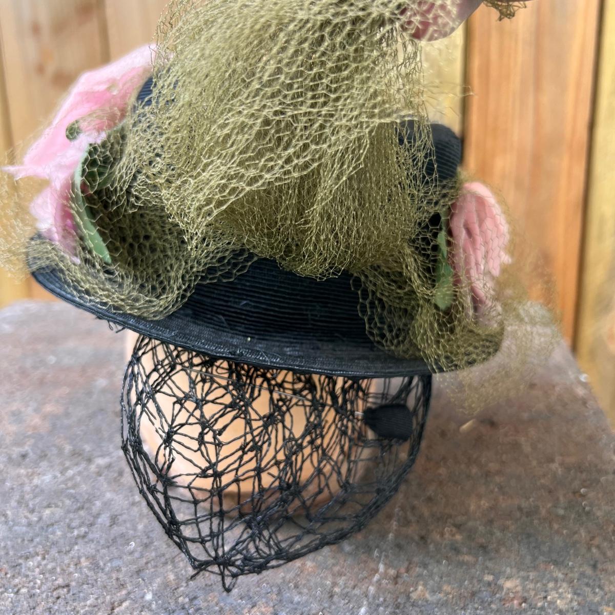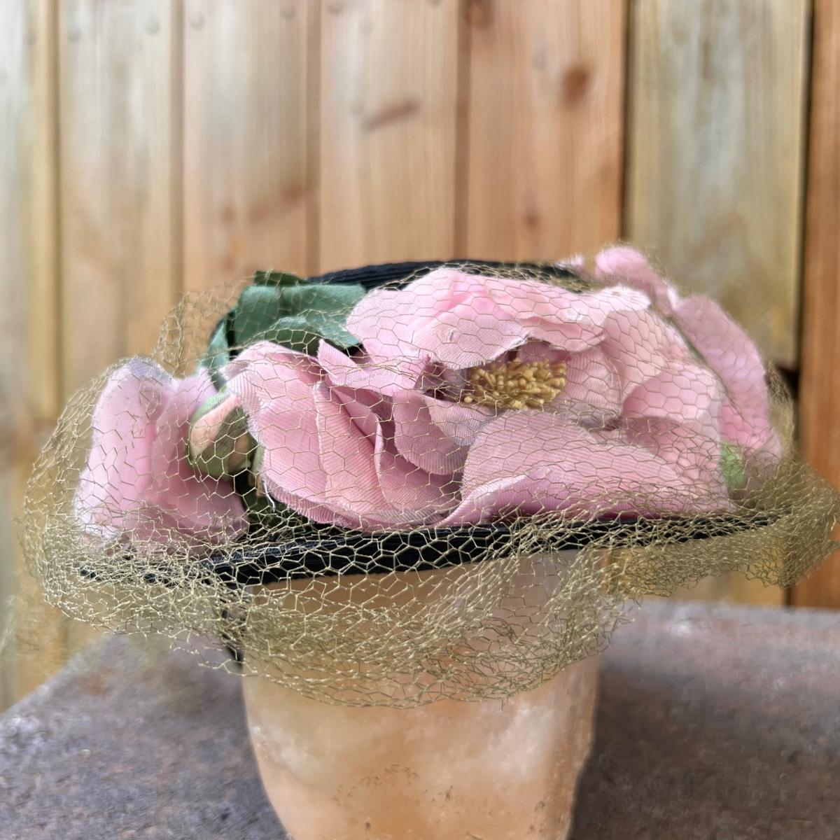 Antique hat with netting and flowers. Net and pin for bun. Great condition!
