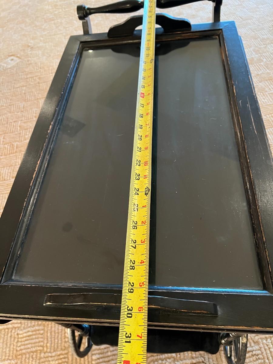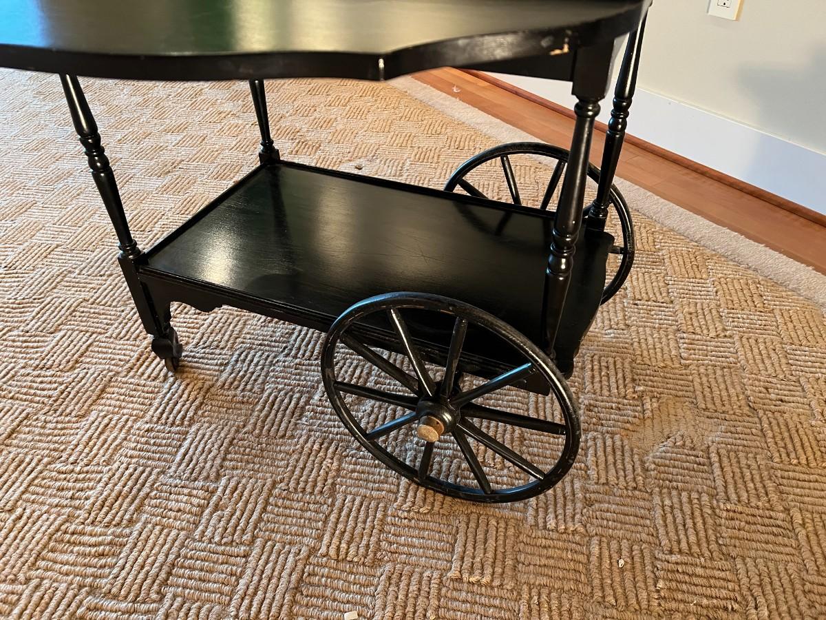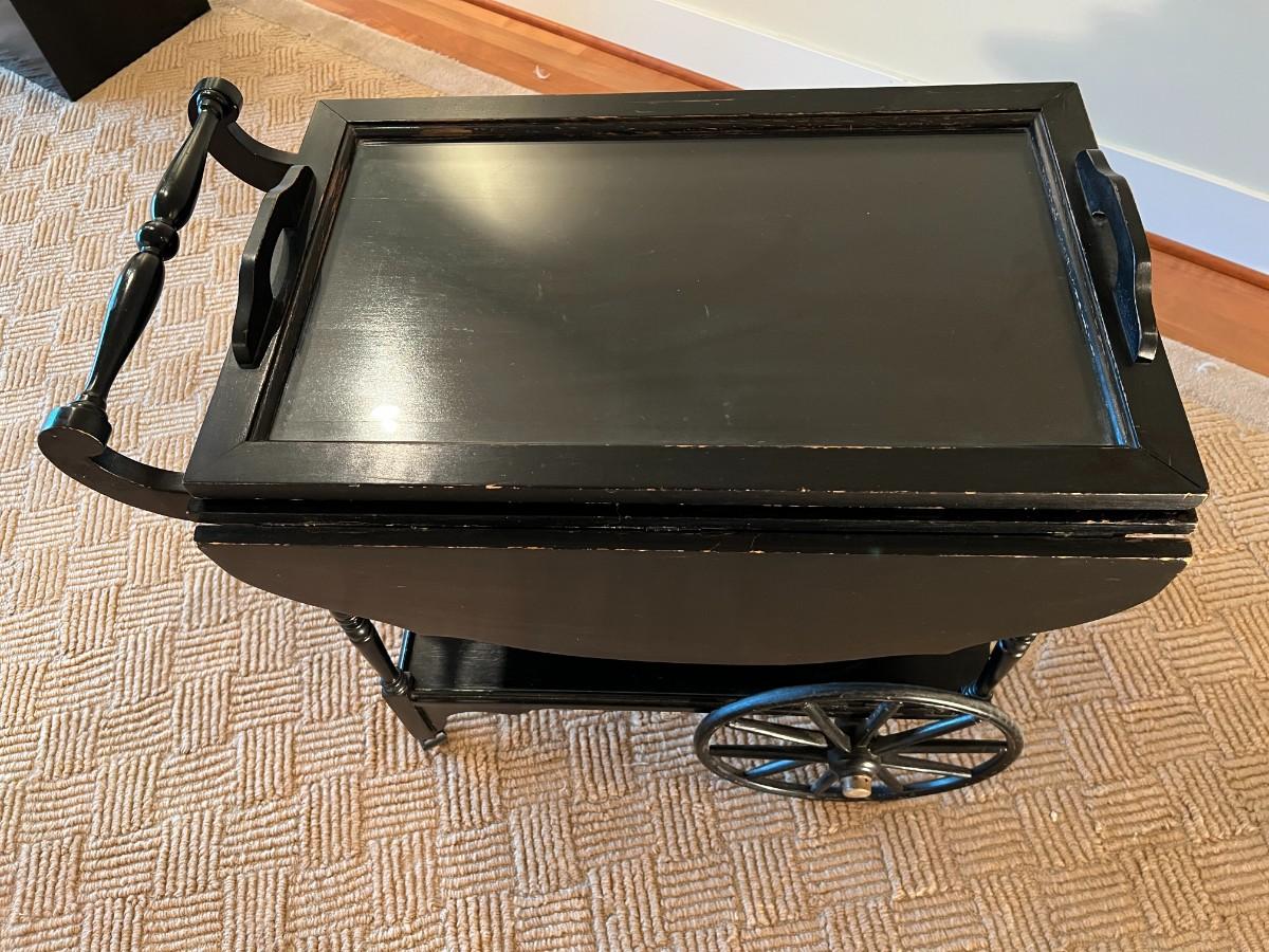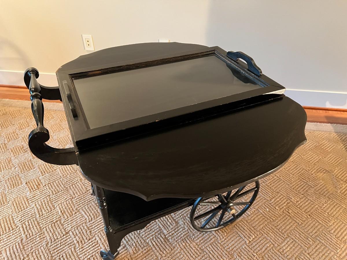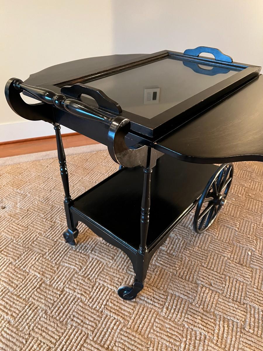 Antique Victorian Style Black Wood Expandable Bar Cart with Glass Tray