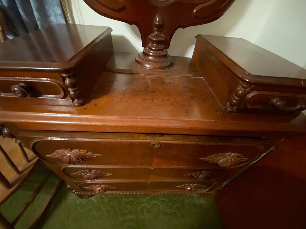 Antique Victorian Style Burled Walnut 3-drawer dresser w/tilt mirror