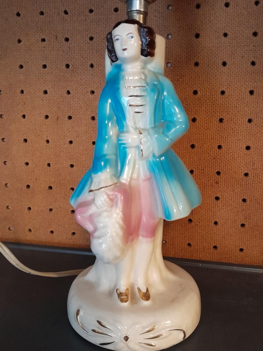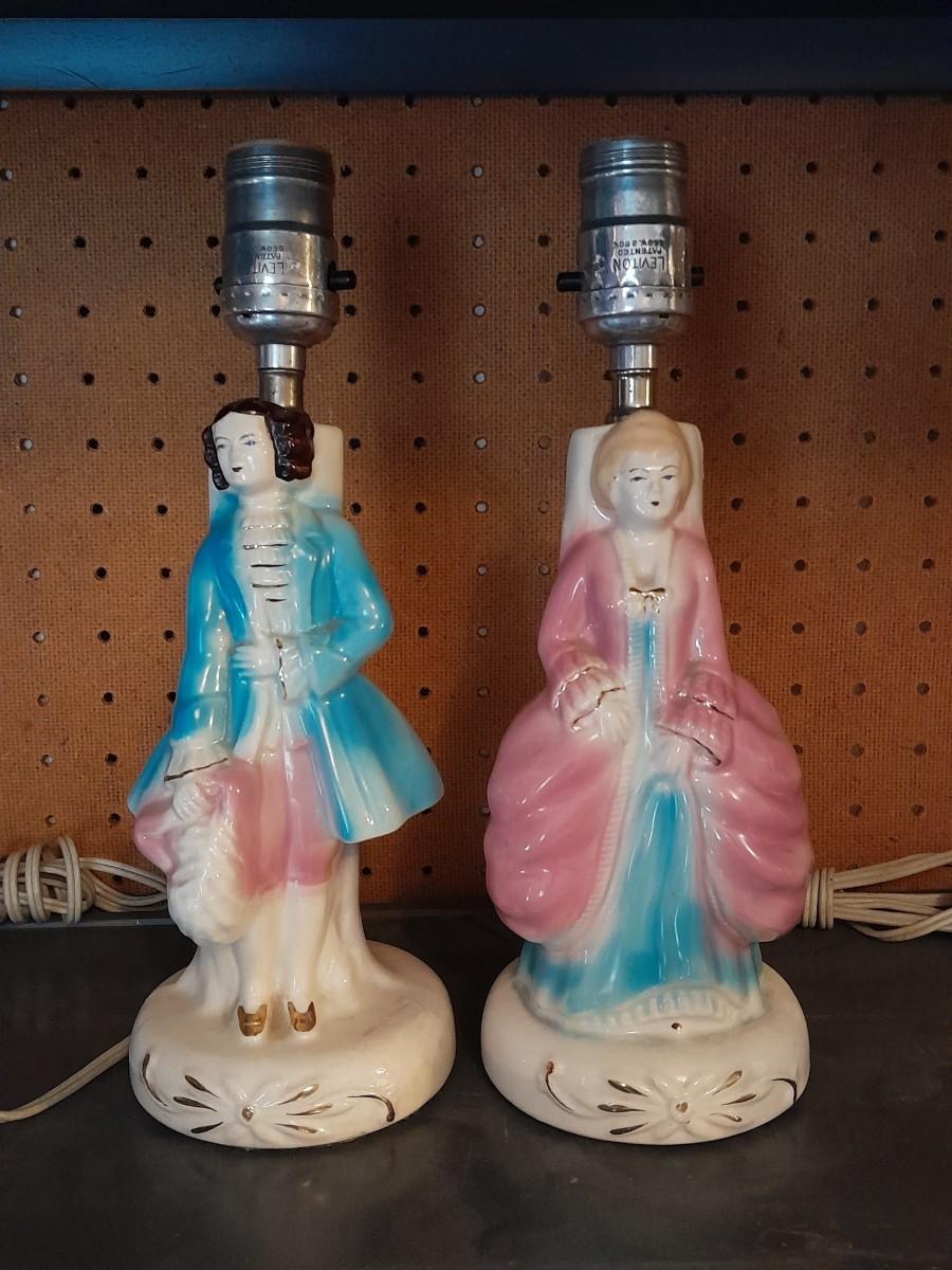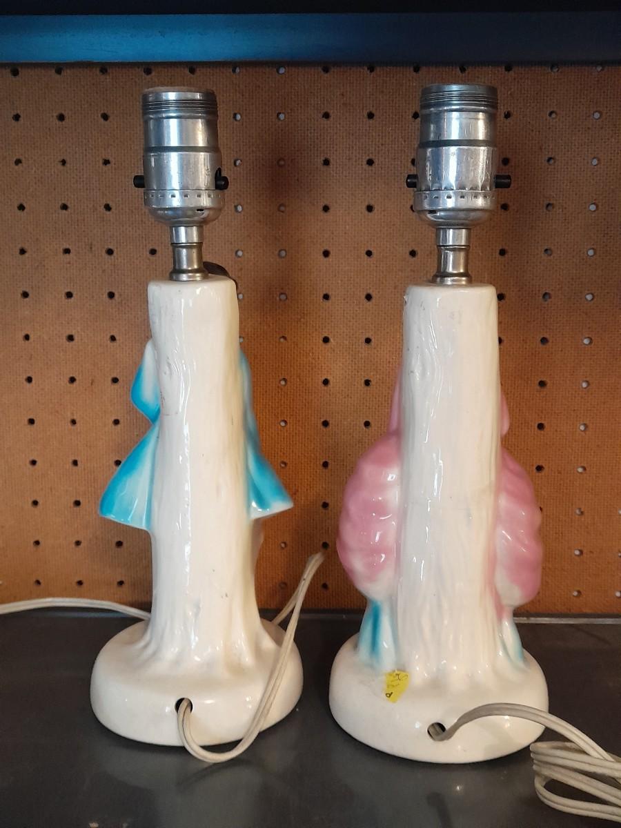 ANTIQUE VICTORIAN STYLE PORCELAIN MAN & WOMAN BEDSIDE LAMPS 11"