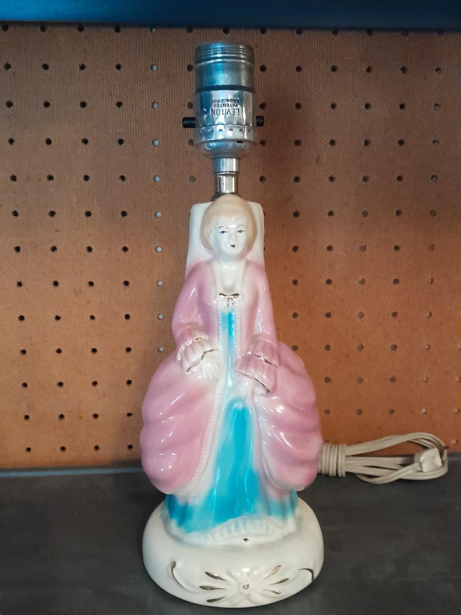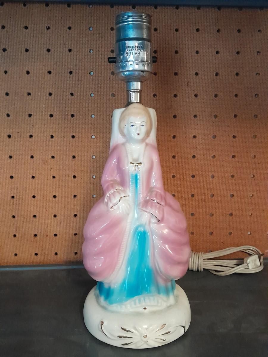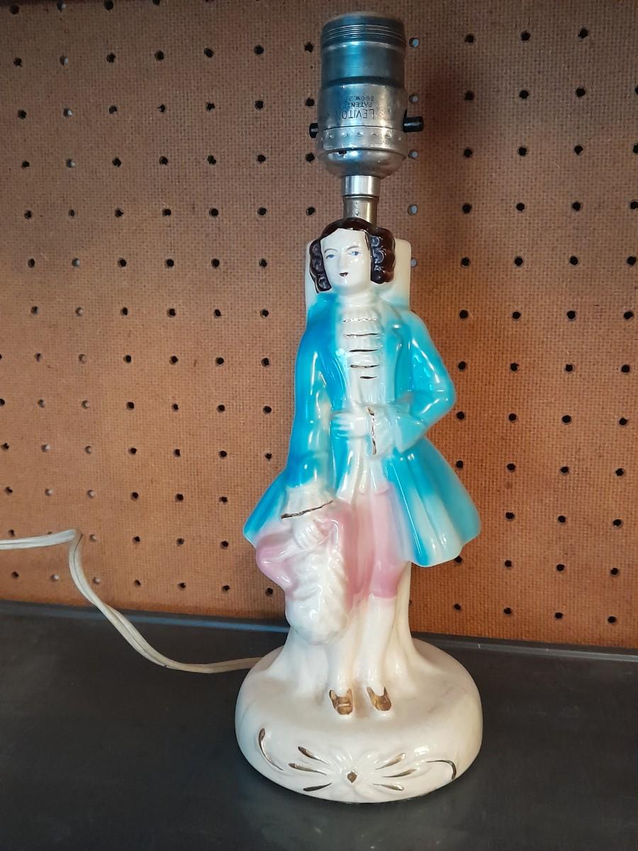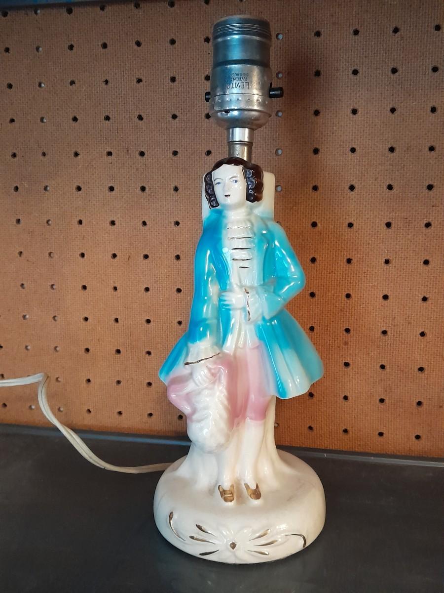 ANTIQUE VICTORIAN STYLE PORCELAIN MAN & WOMAN BEDSIDE LAMPS 11"