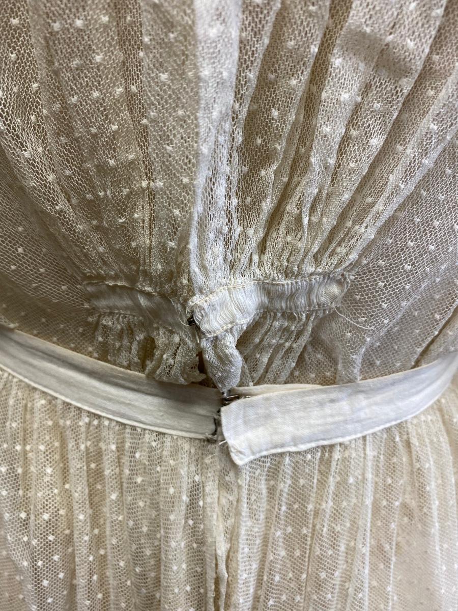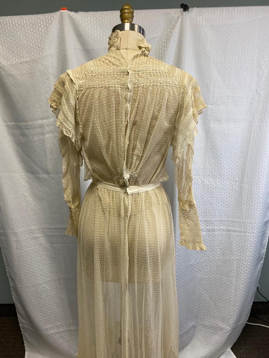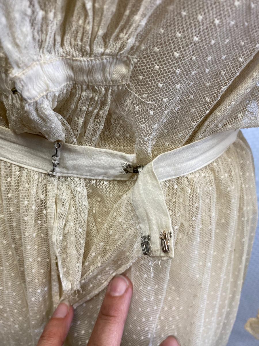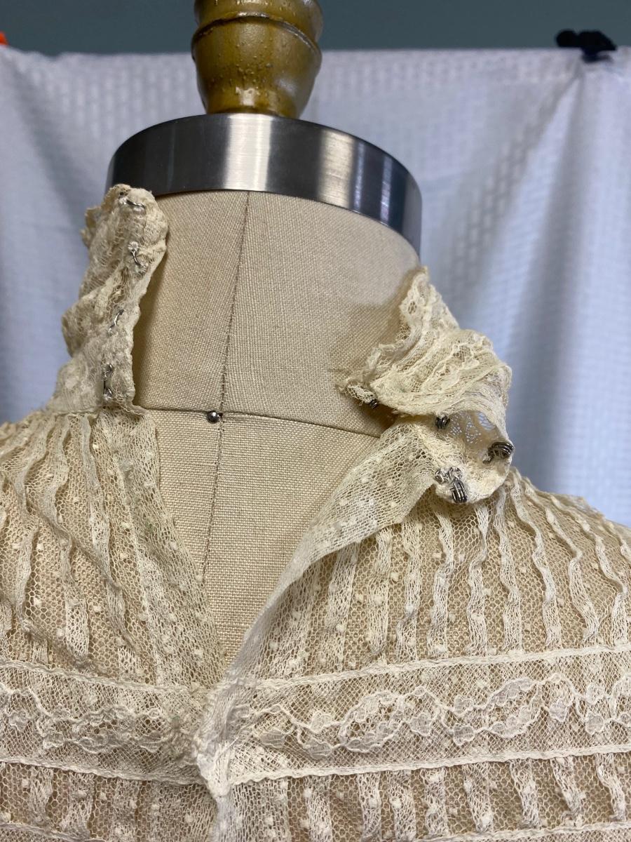 Antique Victorian Two Piece Dotted Lace Blouse & Skirt Boho Romantic Prairie Style. In good antique condition. Matching set does have some discolor normal for the age. No serious staining or holes. Hook and eye closure. The blouse has an unfinished bottom hem. About a size 8 could probably be refitted with the hook and eye closure. Part of a large Victorian collection currently on consignment that is being auctioned.