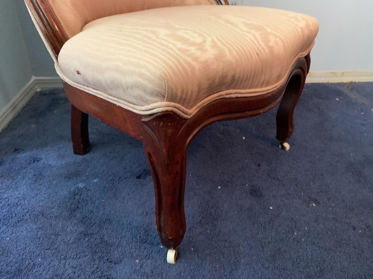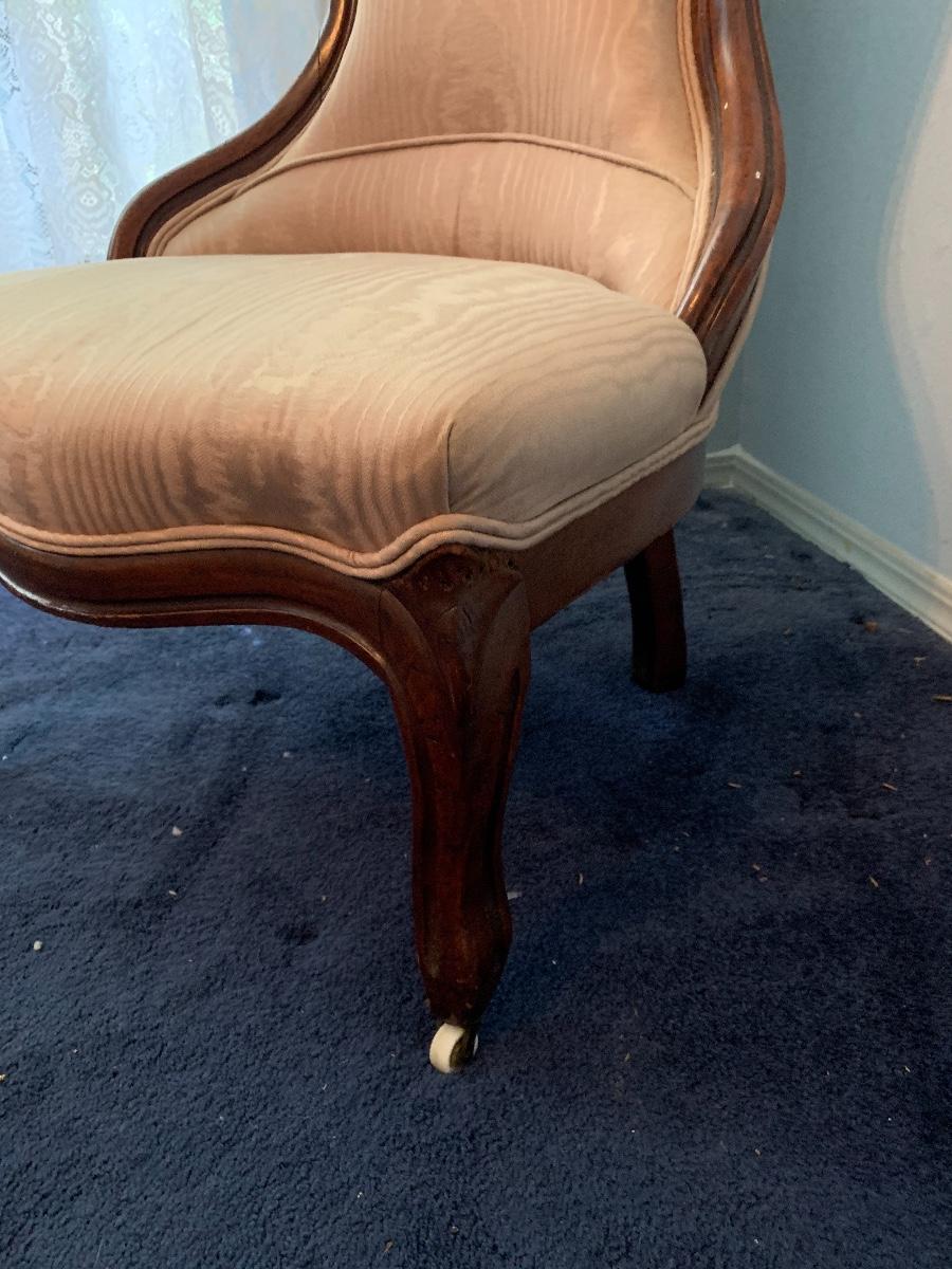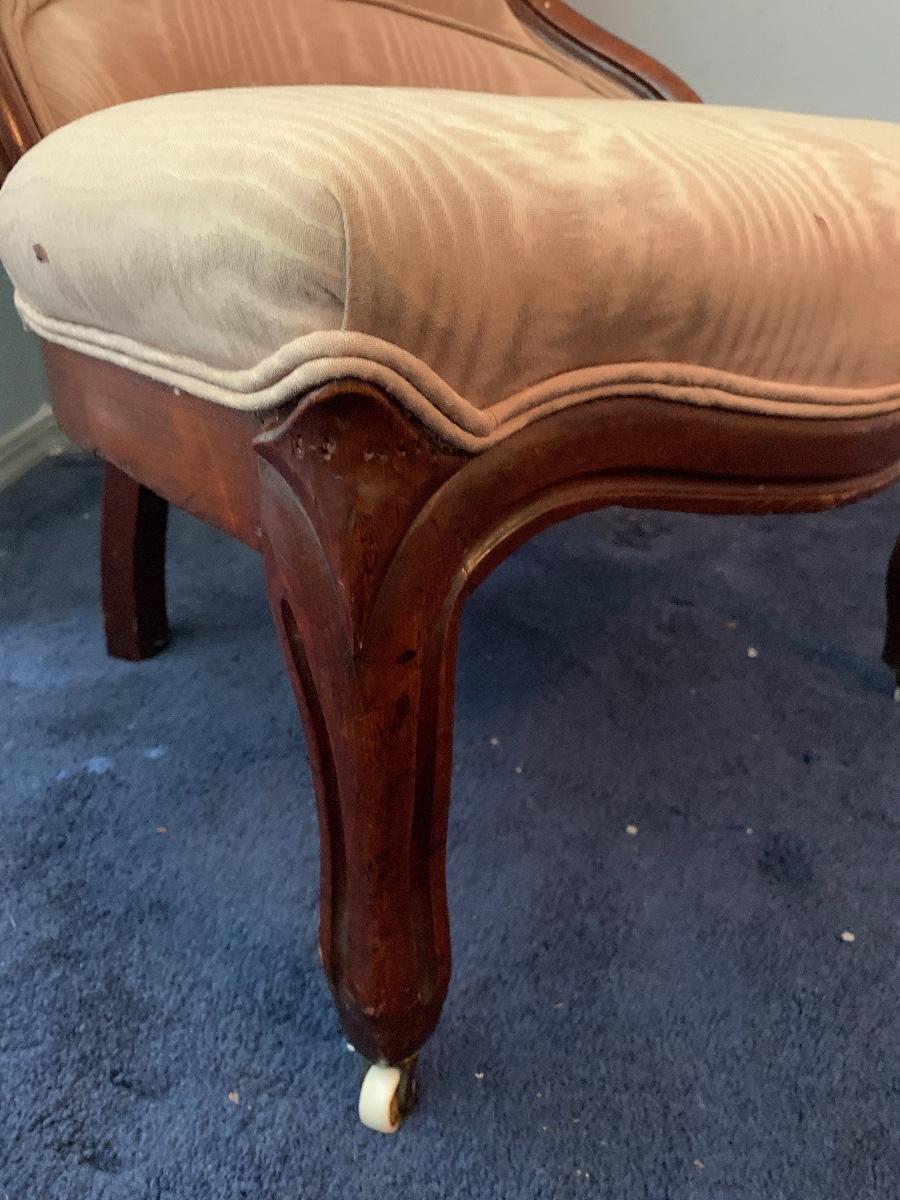 Antique Victorian Upholstered Parlor Chair w/ porcelain casters