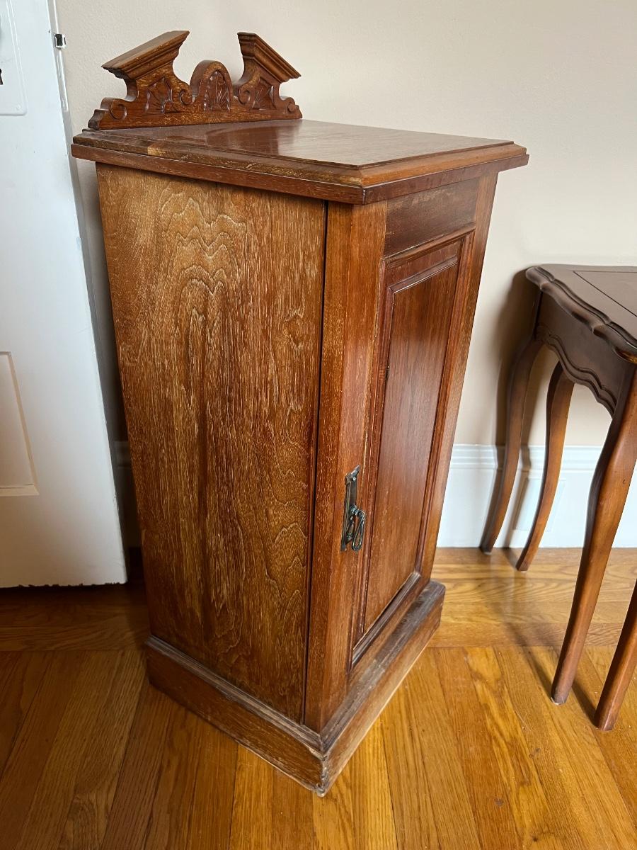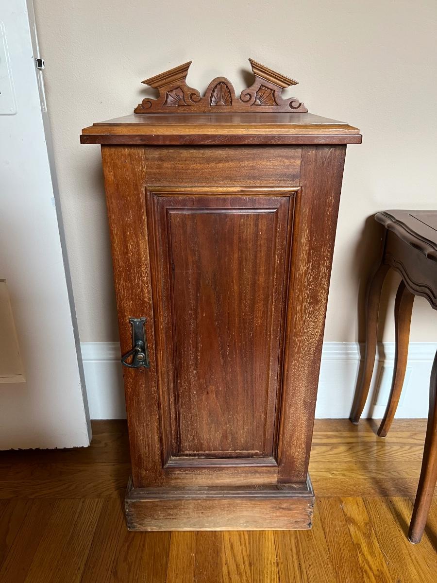 Antique Victorian walnut bedside cabinet, 31” T x 15” W x 14” D