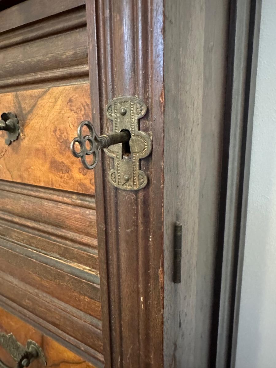 There right side of the chest has a key and locks the drawers from opening, see pictures for reference.