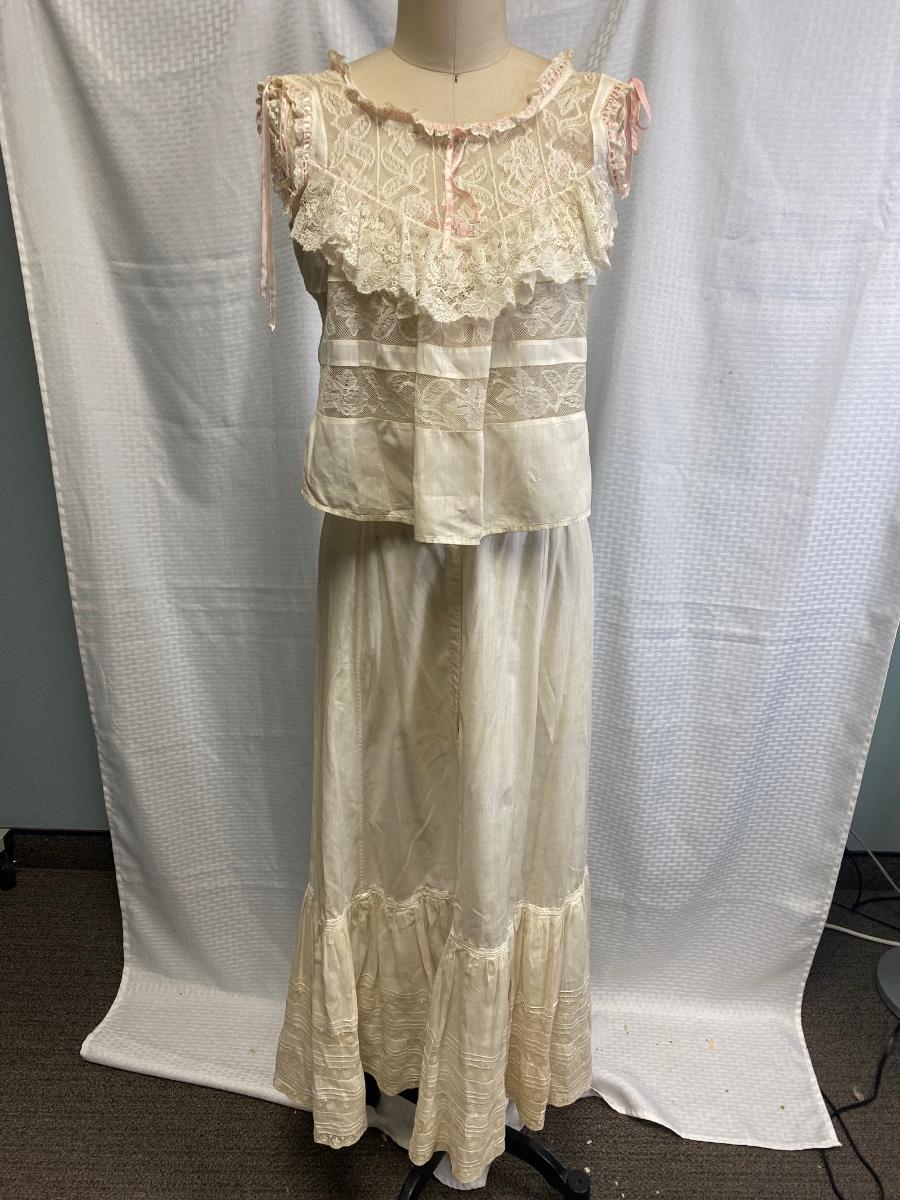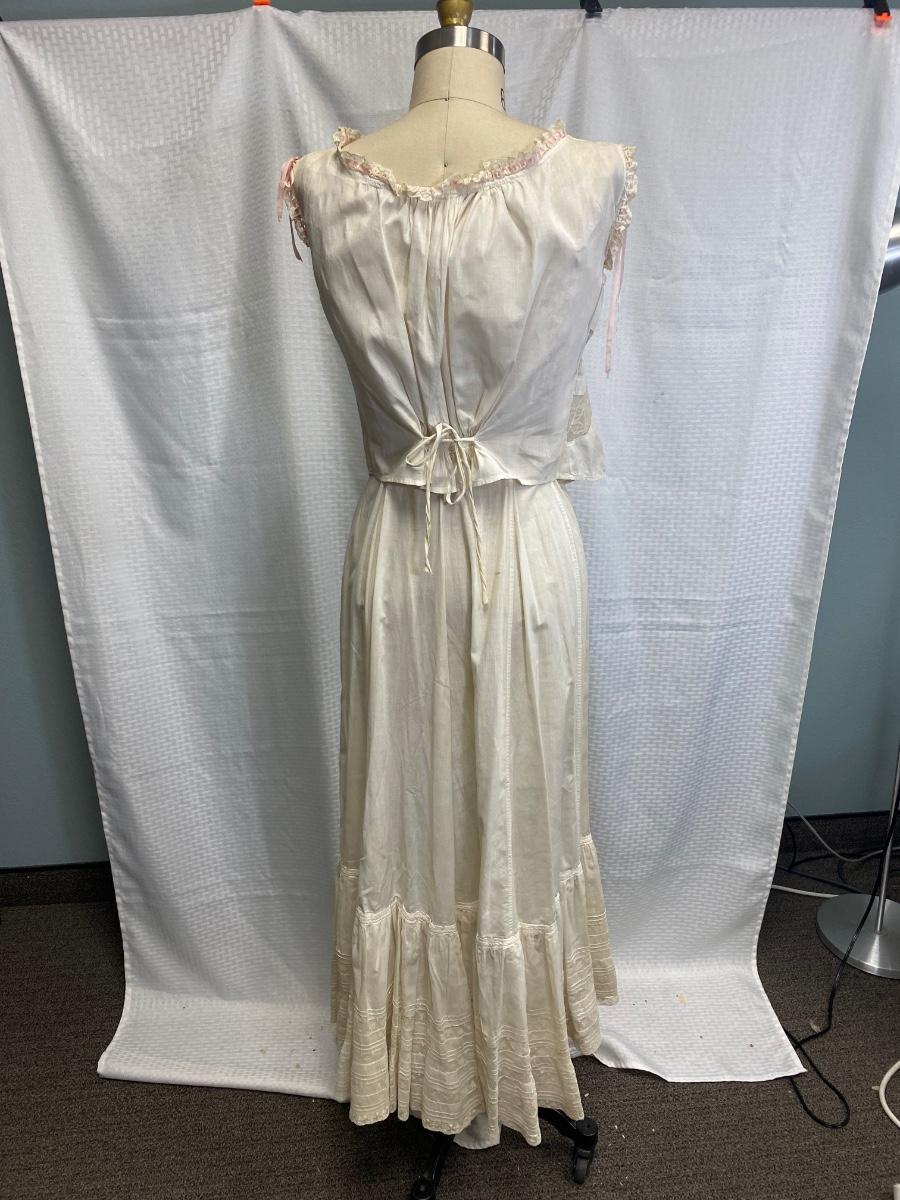 Antique Victorian White Cotton Lace Two Piece Undergarment Tea Dress w Blouse Sleeveless