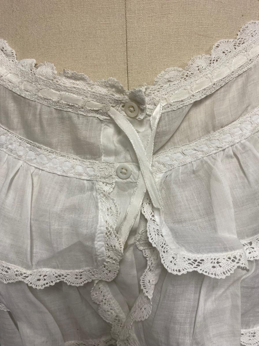 Antique Victorian White Cotton Lace Gibson Girl Style Camisole Tanks. In overall good condition, wearable. May have discolor from age. Size 8.