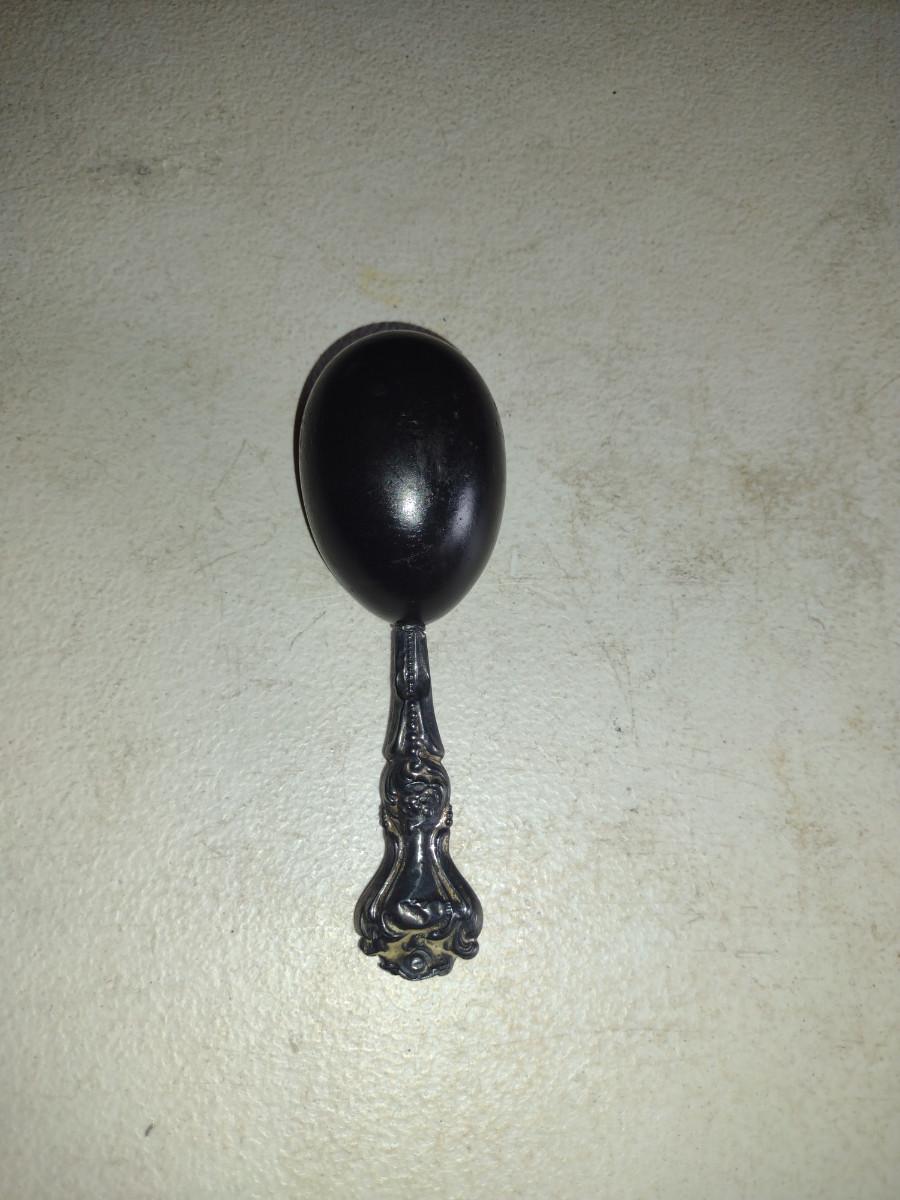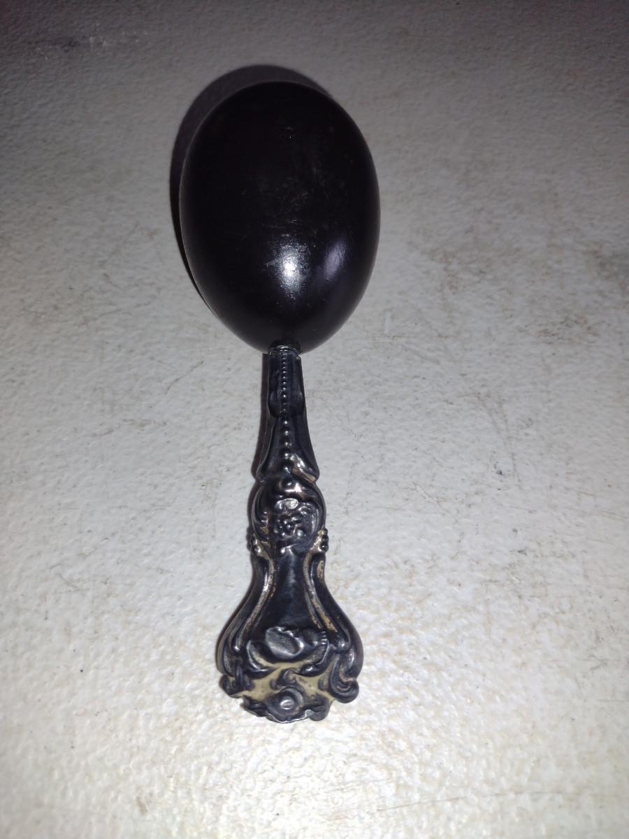 Antique Victorian Wood Sock Darning Egg with Possible Sterling Handle. Please see all pictures for condition of handle- has been bent and misshapen at end.