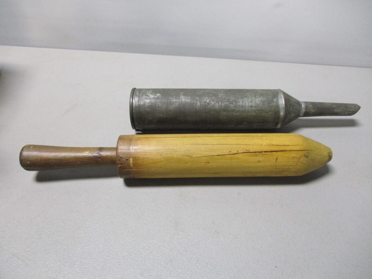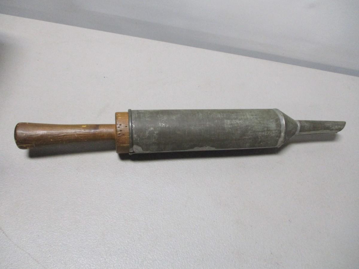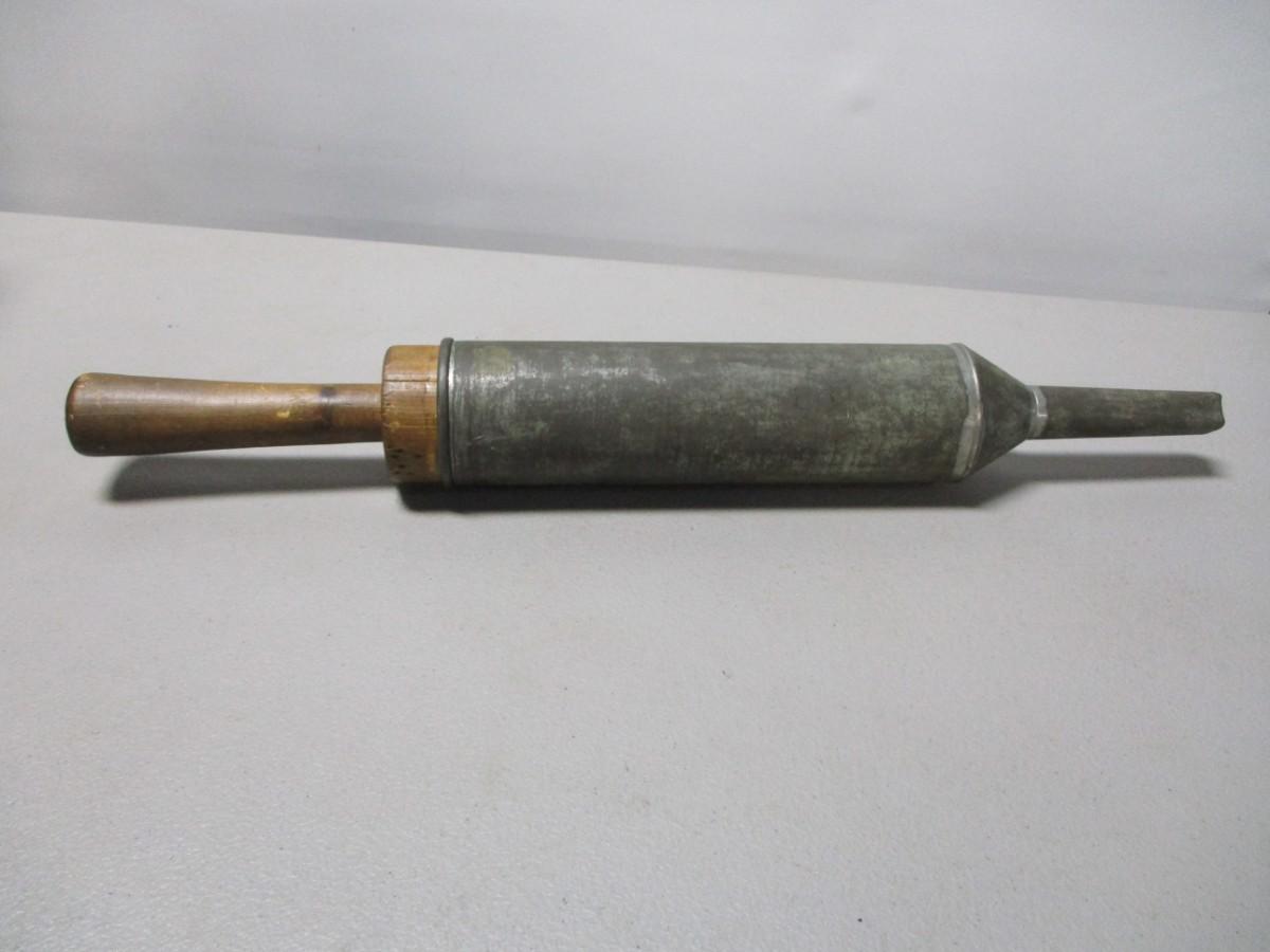 Antique Metal Tin Tube with Wood Plunger Hand Sausage Stuffer