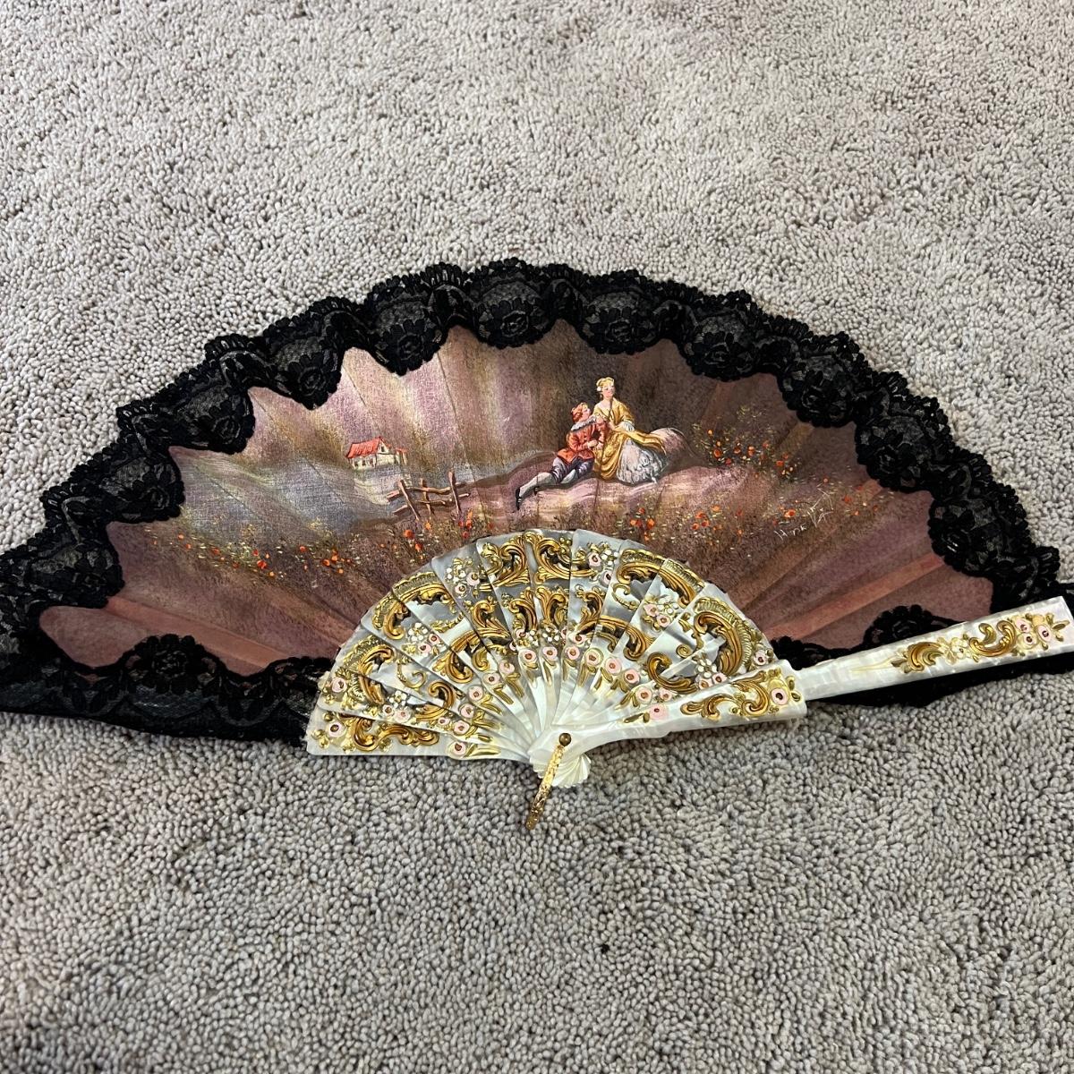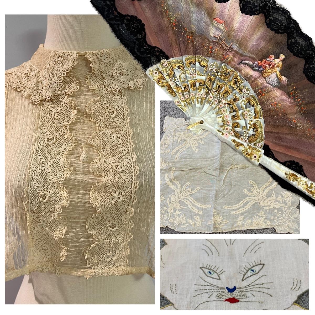 Antique & Vintage Accessories Lot - Lace Collar, Mother of Pearl Fan