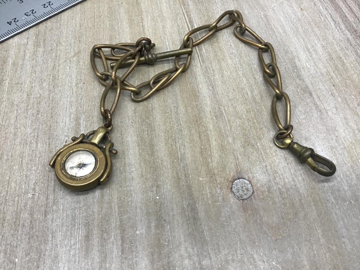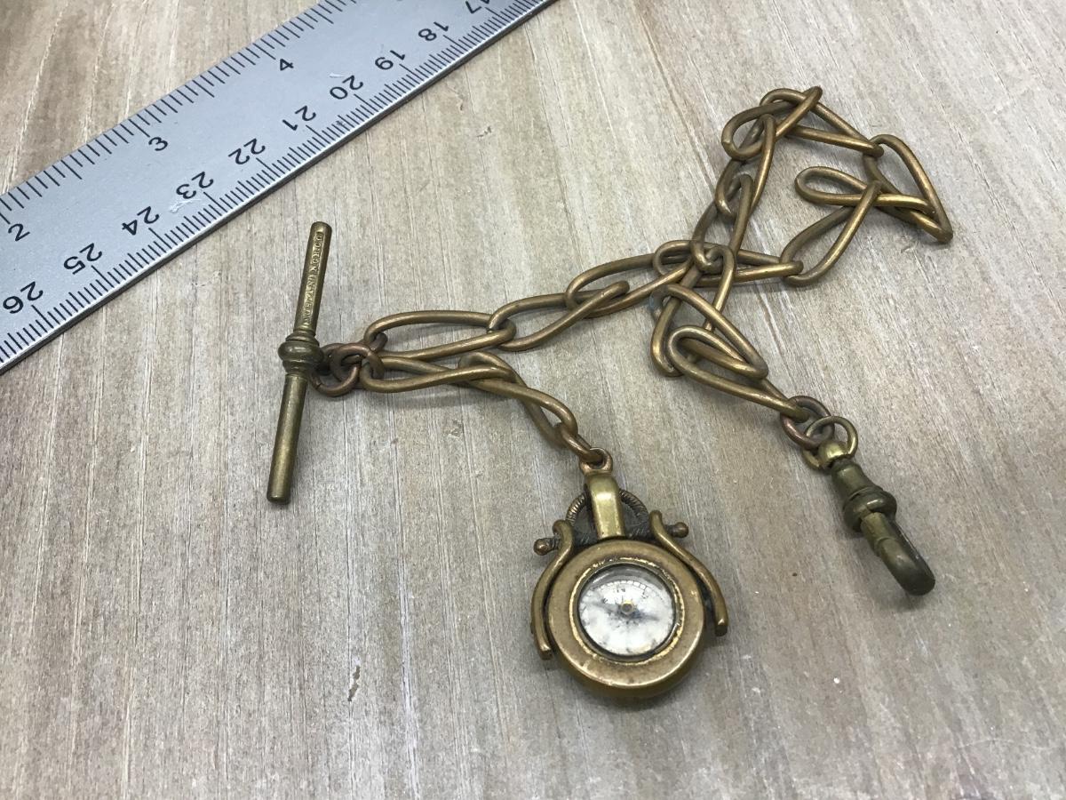 Antique Vintage NCR Chain with Agate Watch Chain Fob Compass