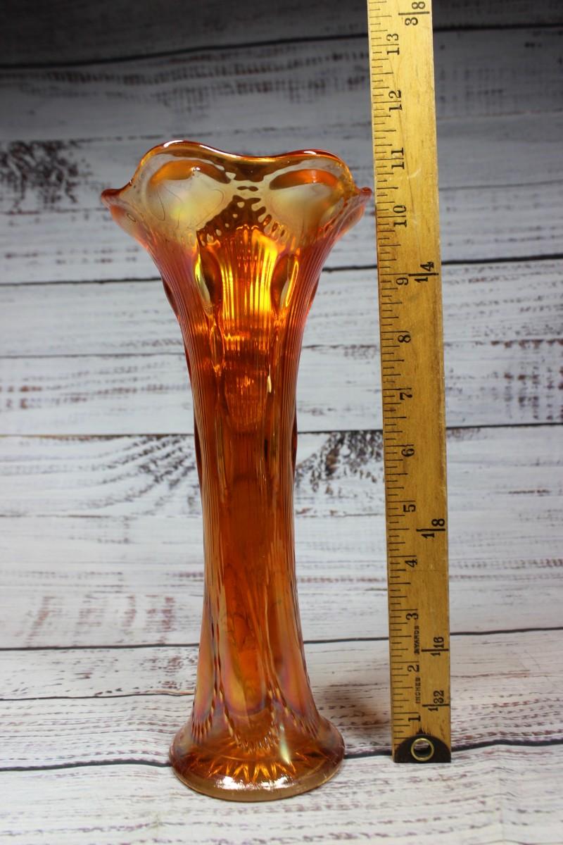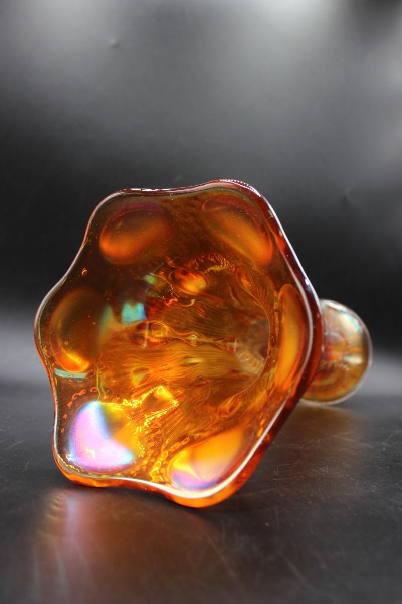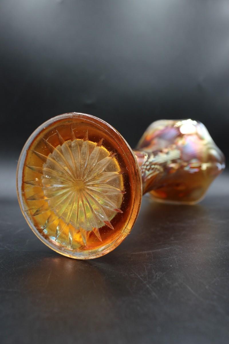 Antique Vintage Amber Bubble Carnival Glass Vase, there are no chips or cracks to the vase and is in good vintage condition. Check pictures for more details and for sizing.