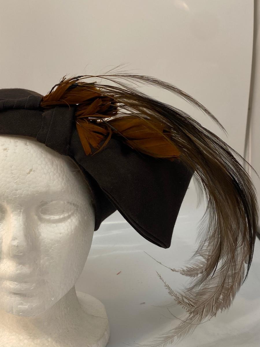 Antique Vintage Asymmetrical Dark Brown Cloche Fascinator Feathered Hat