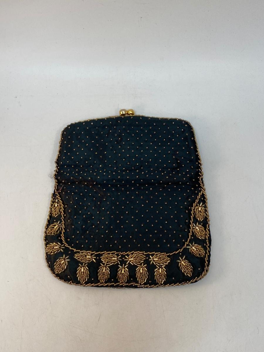Antique Vintage Black & Gold Micro Beaded Pineapple Pattern Fold Over Clutch Purse