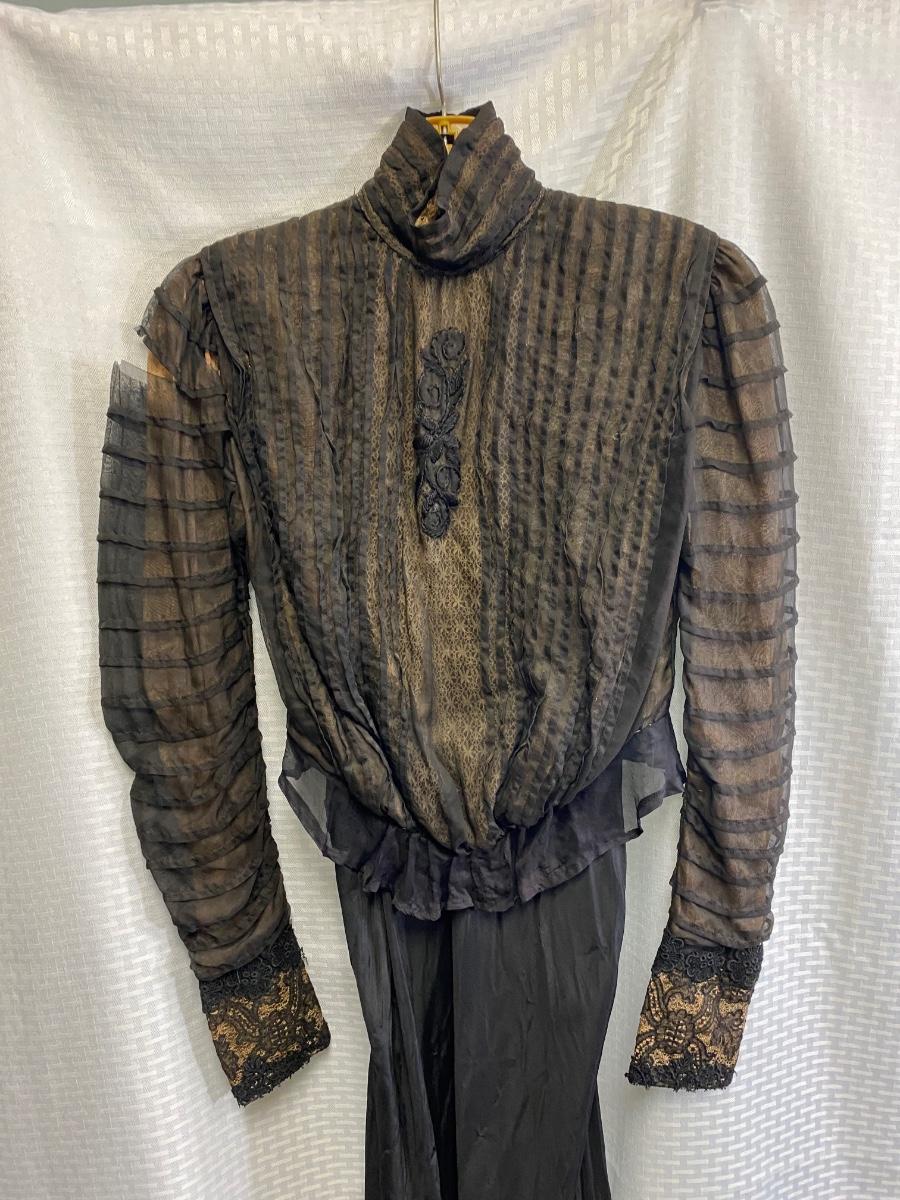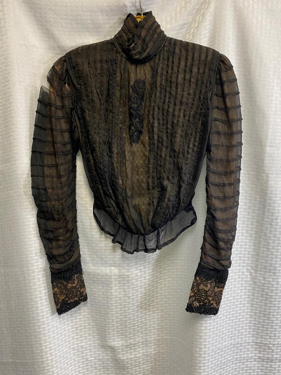 Antique Vintage Black Victorian Mourning Blouse with Slip Gothic Boho Romance