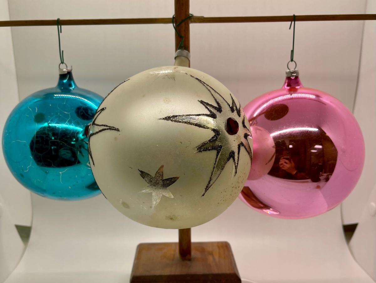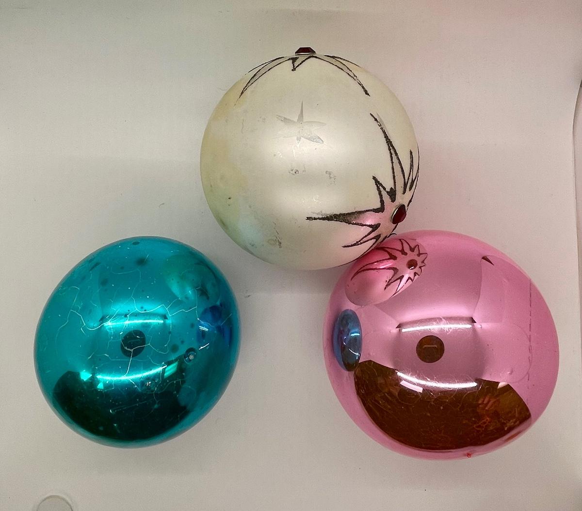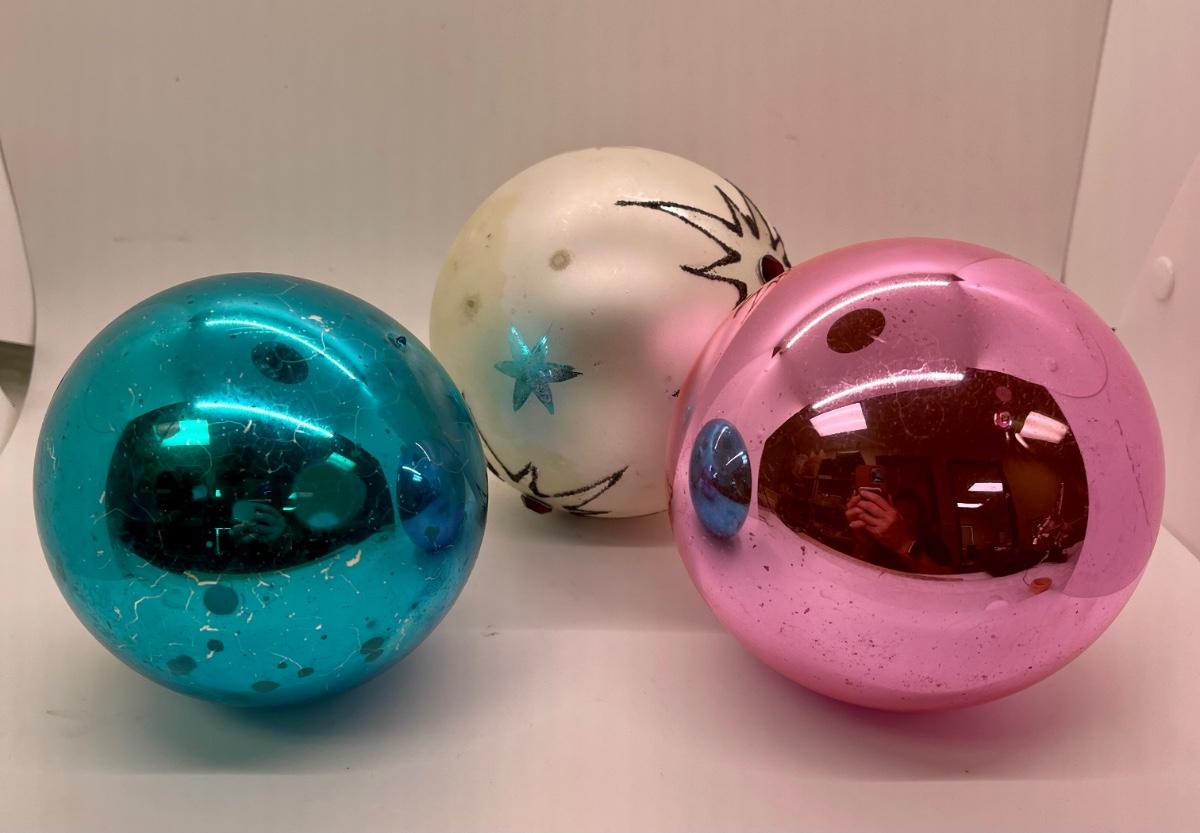Antique Vintage Blown Mercury Glass Christmas ornaments lot of 3 jumbo
