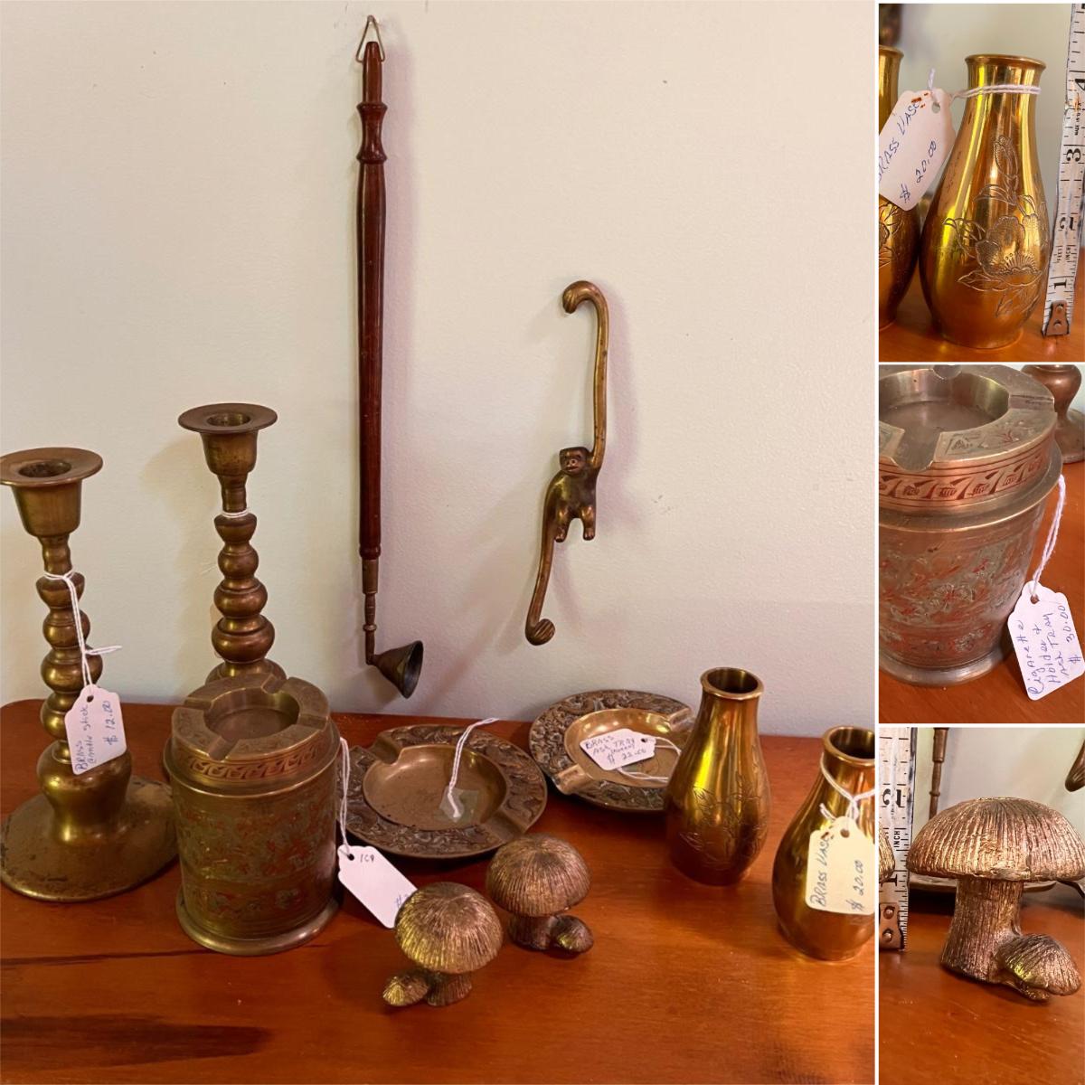Antique Vintage Brass Lot - Vases, Plates, Candle Holders, Monkey Hook