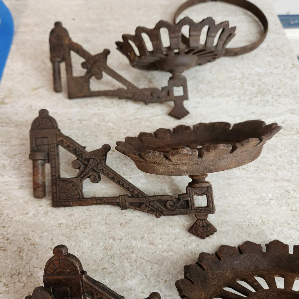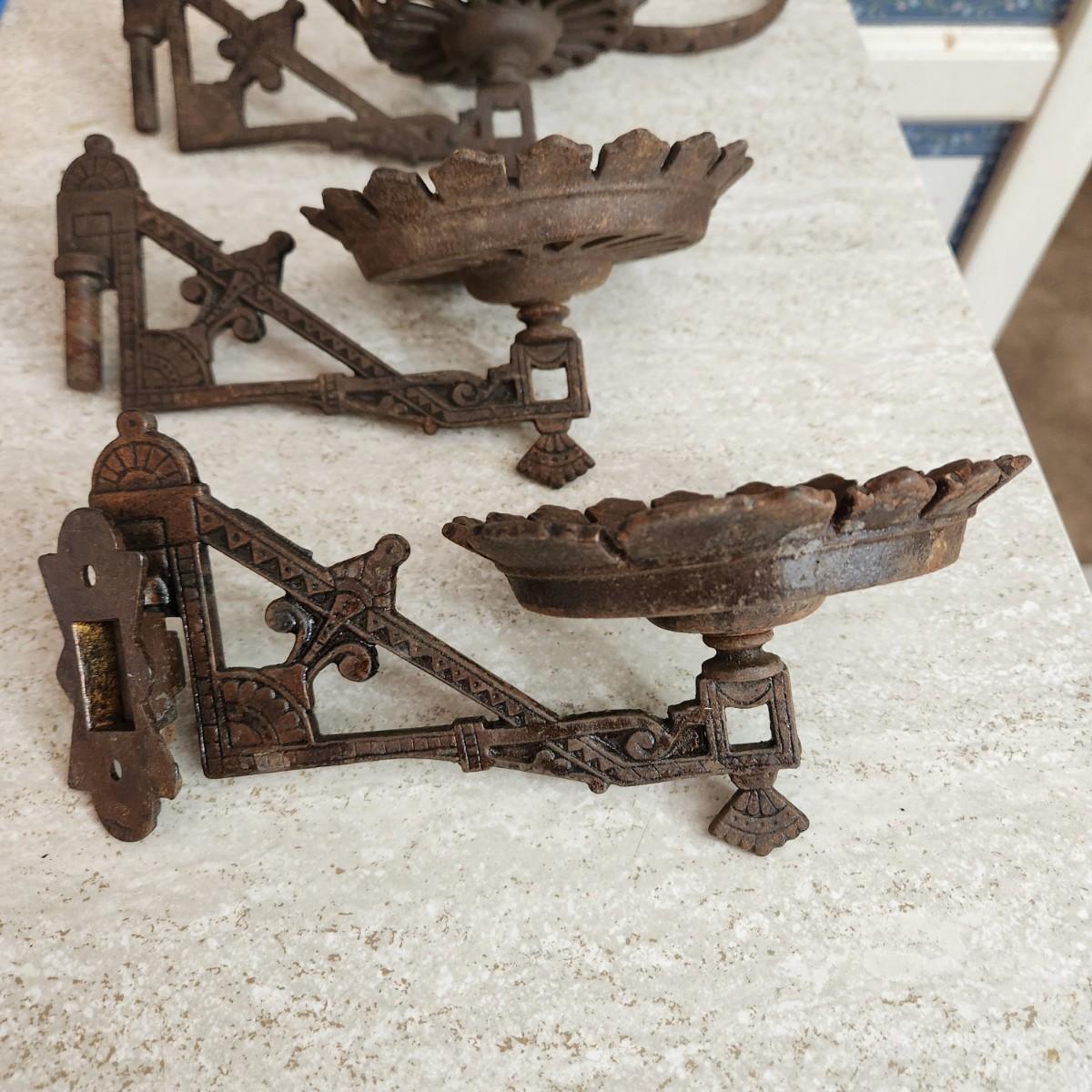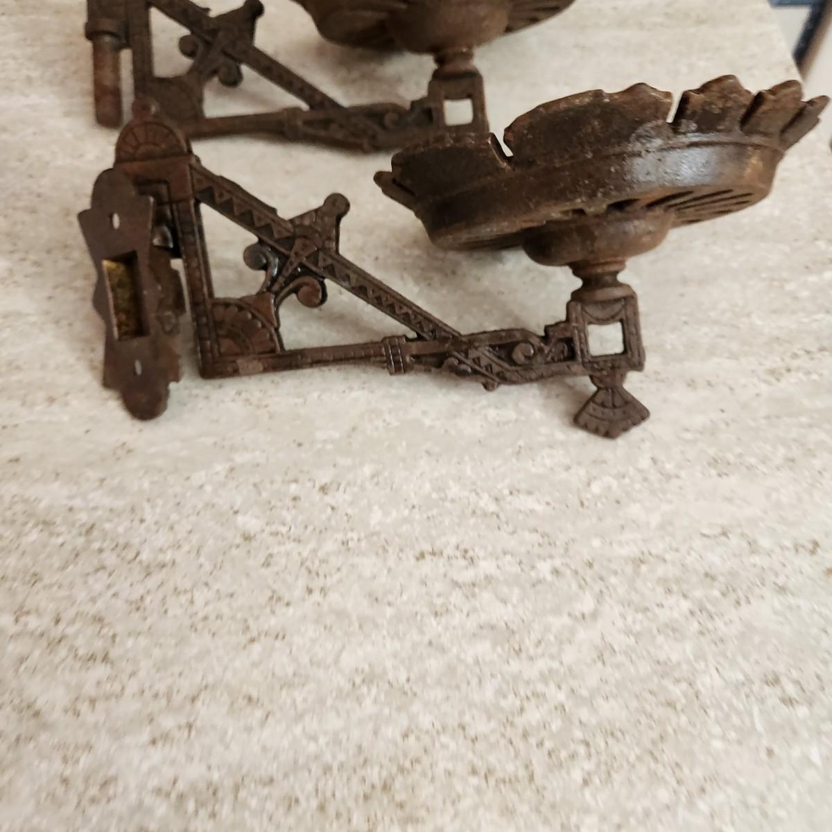 Antique Vintage Cast Iron Oil Lamp holders Wall Sconce