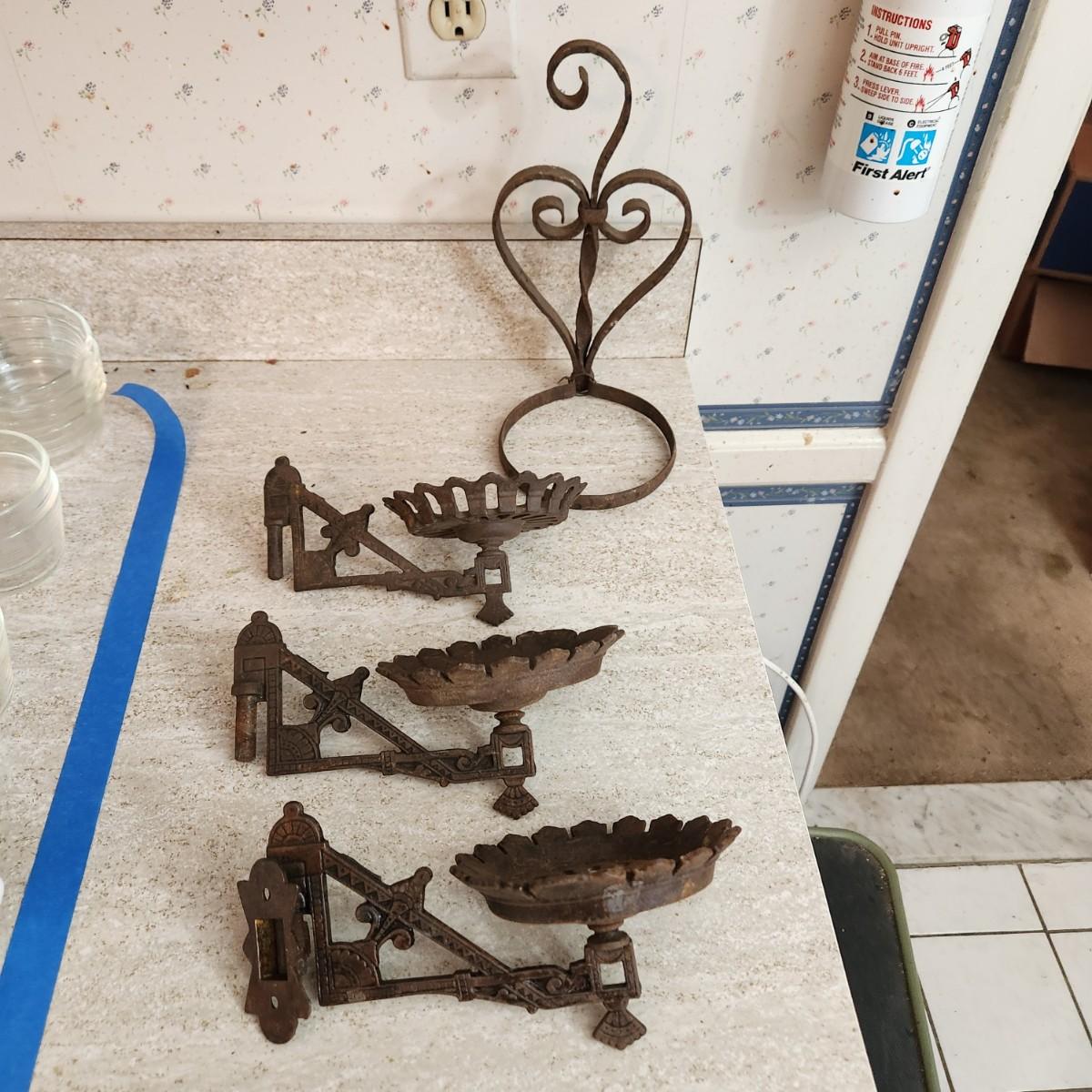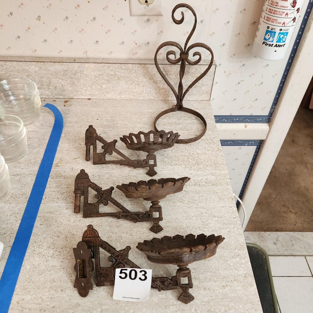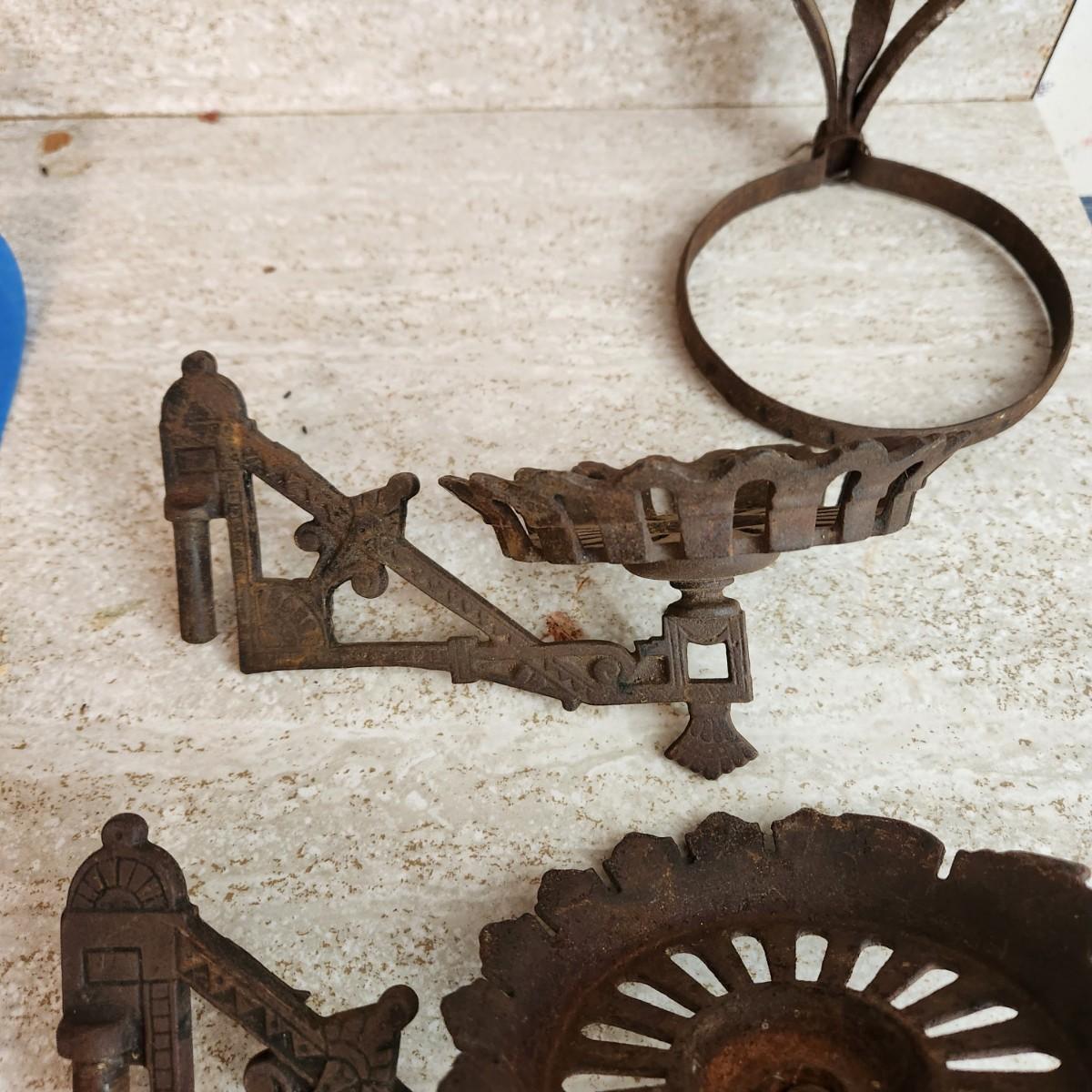 Antique Vintage Cast Iron Oil Lamp holders Wall Sconce