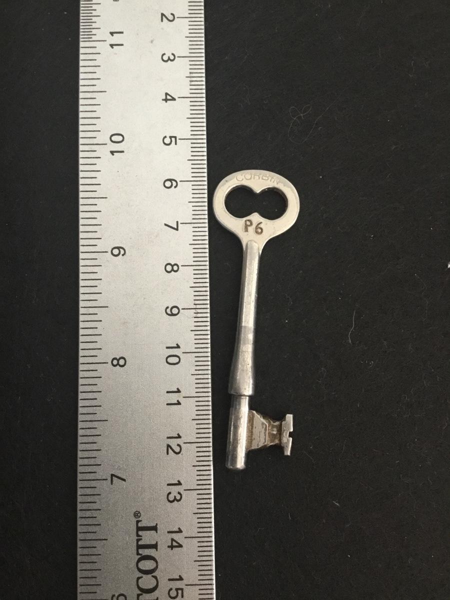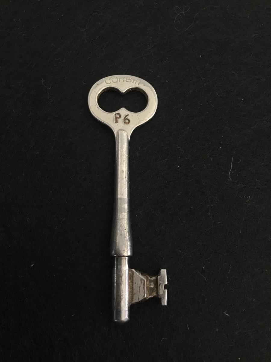 Antique vintage, Corbin skeleton Key P6 door Mortise solid barrel key