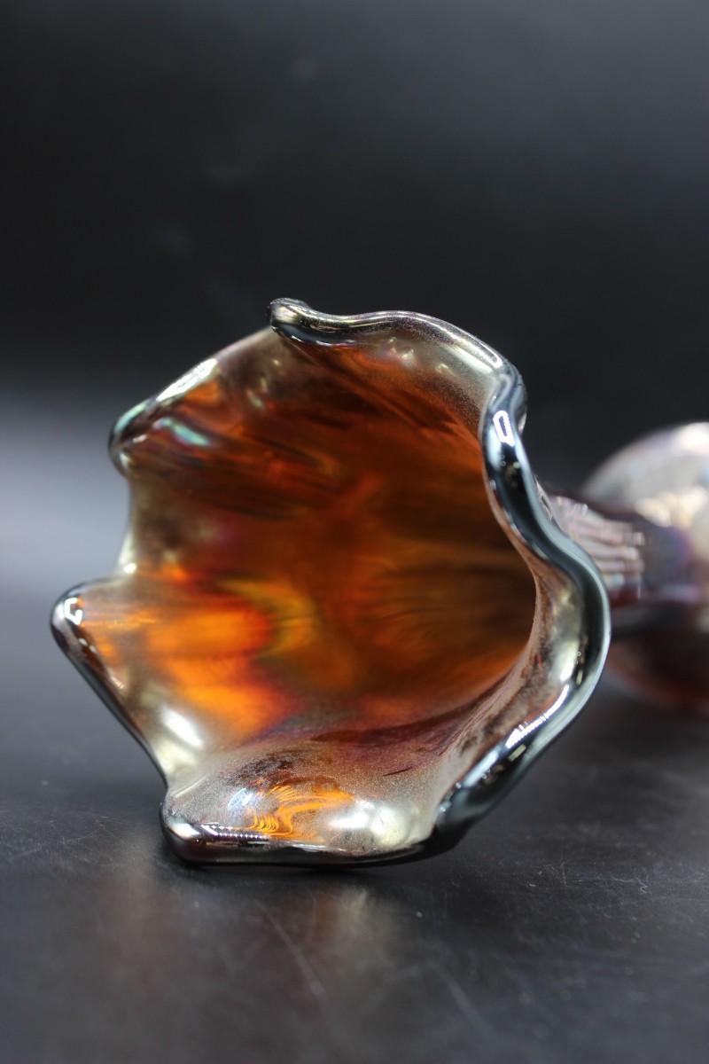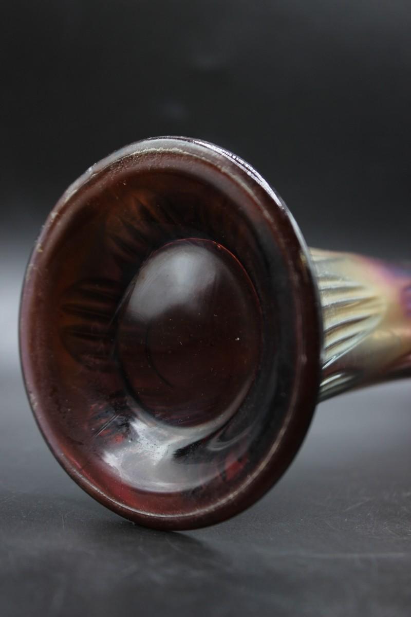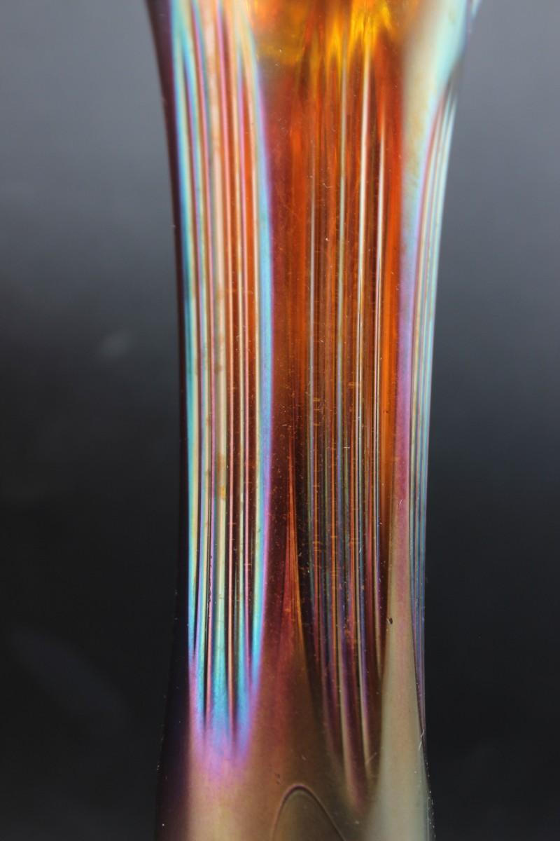 Antique Vintage Fenton Amber Red Carnival Glass Rib Swung Vase