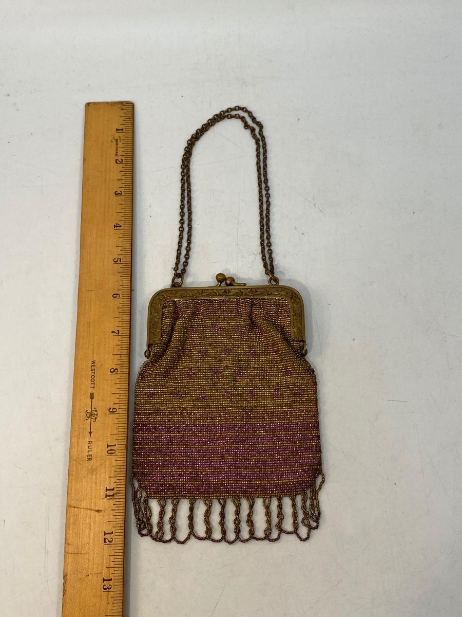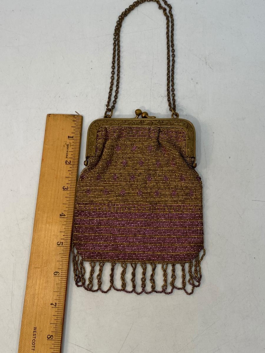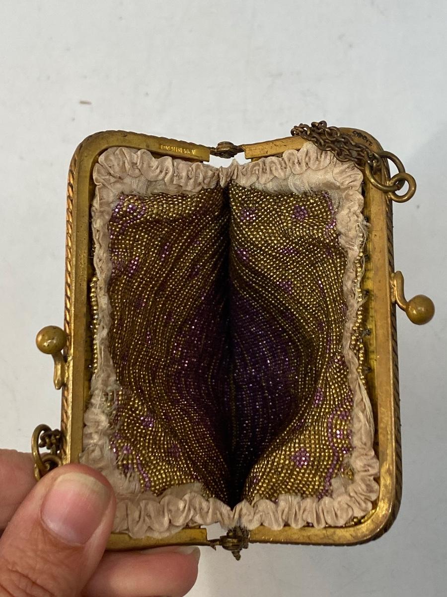 Antique Vintage Gold & Purple Microbead Flapper Purse Clutch Handbag France