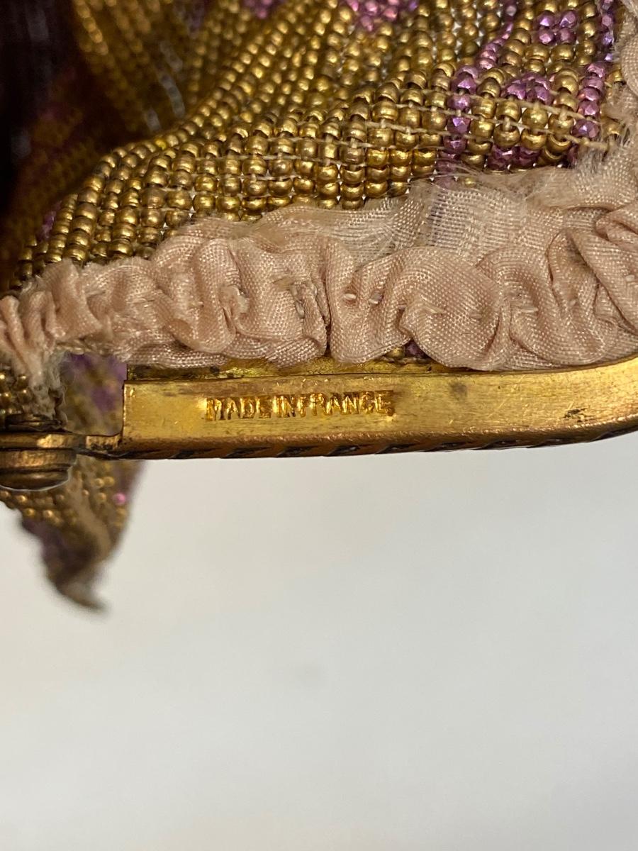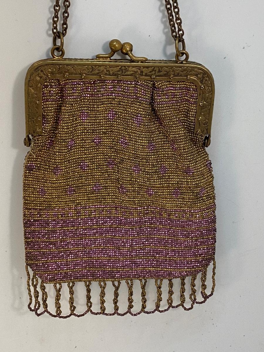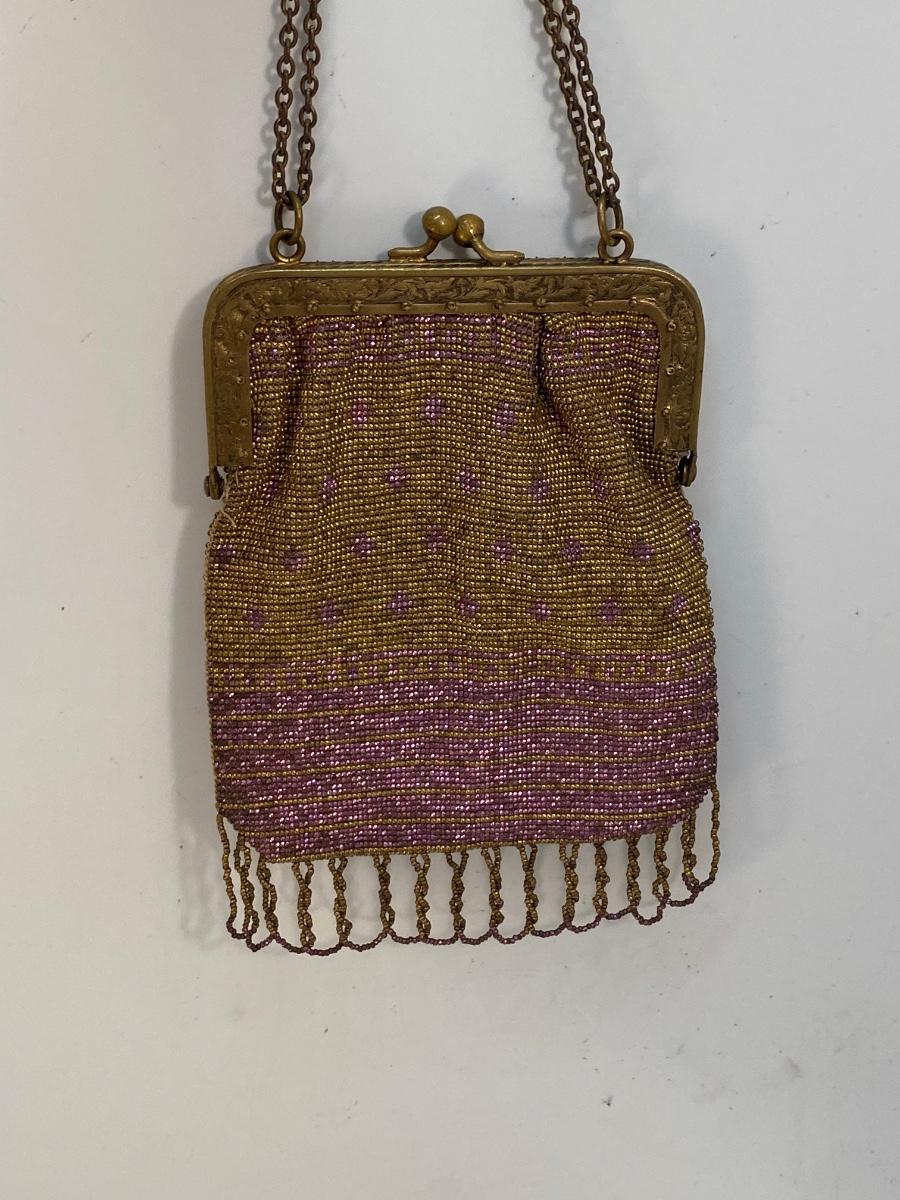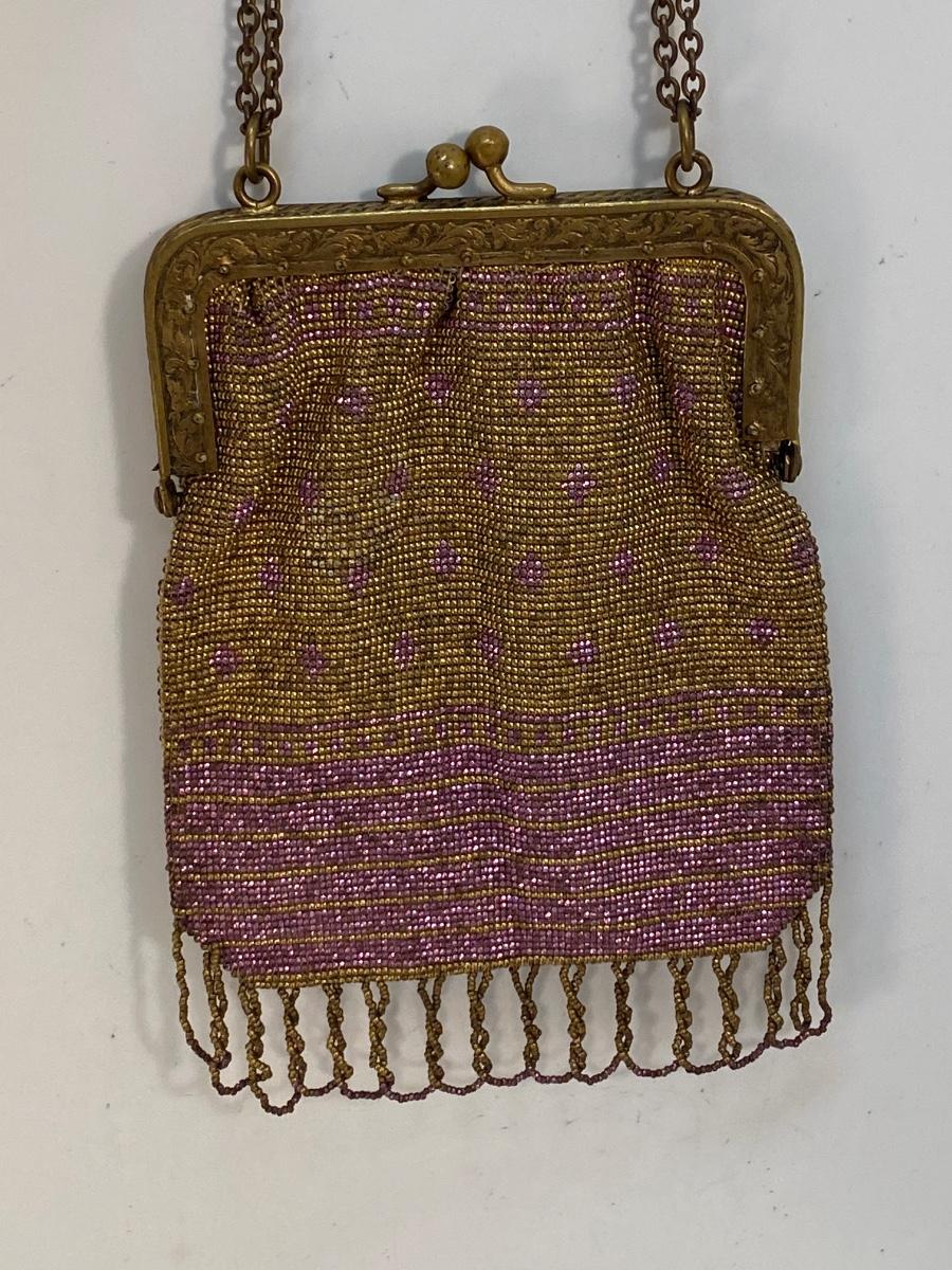 Antique Vintage Gold & Purple Microbead Flapper Purse Clutch Handbag France