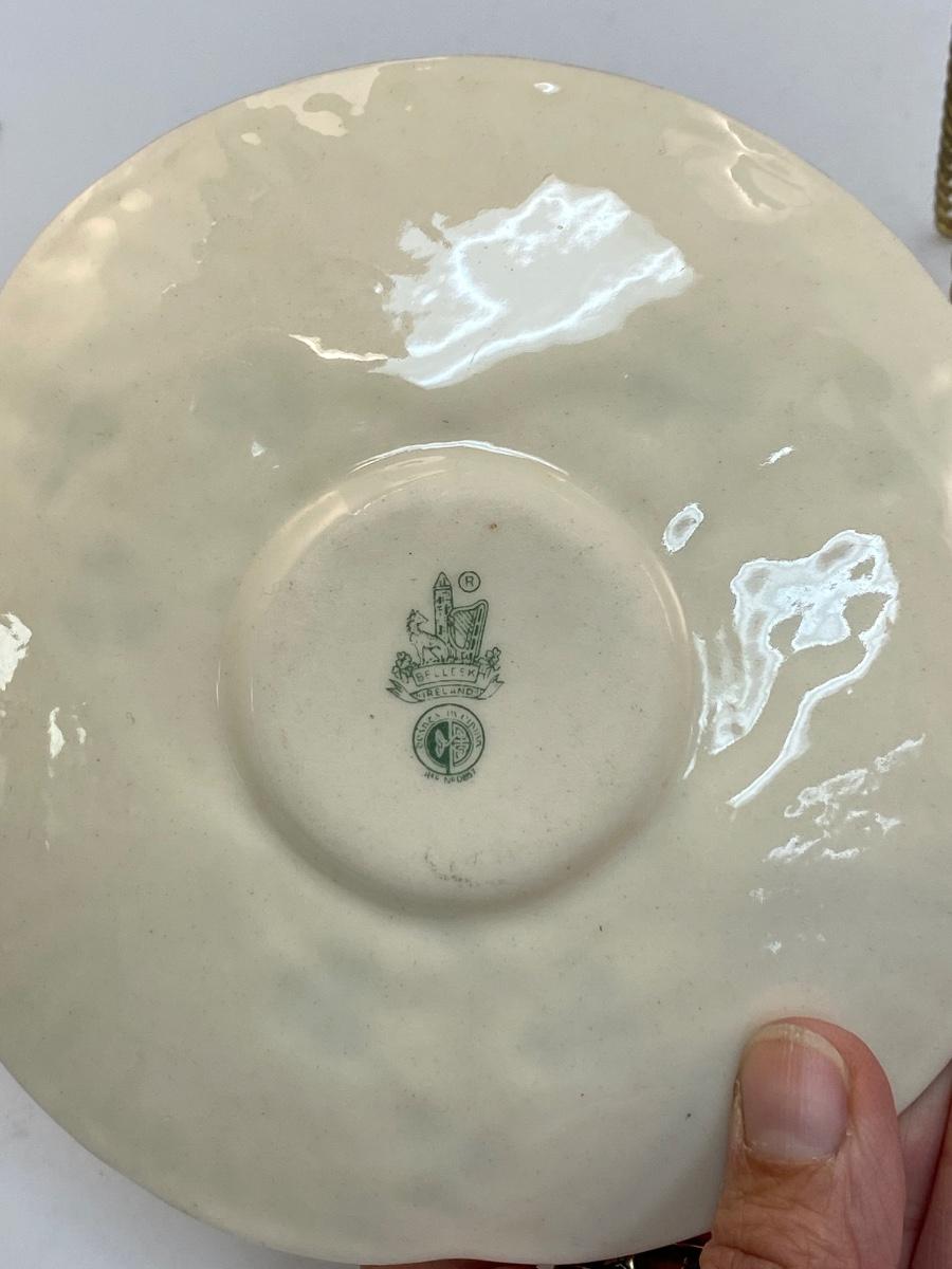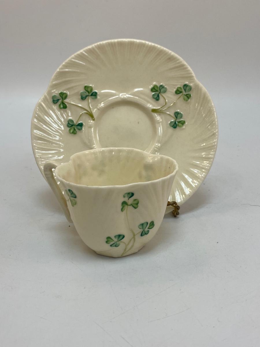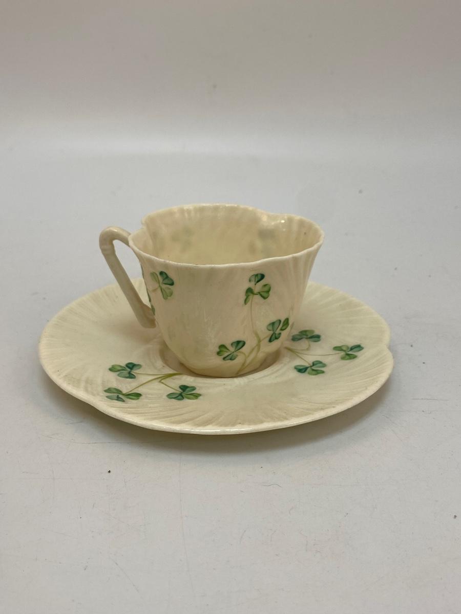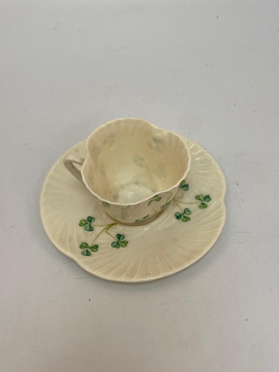 Antique Vintage Green Mark Belleek Ireland Cloverleaf Teacup and Saucer