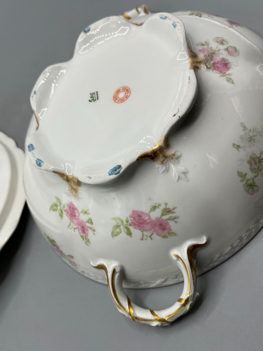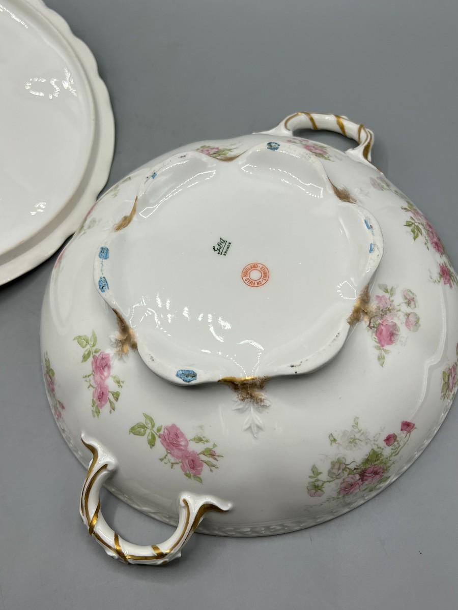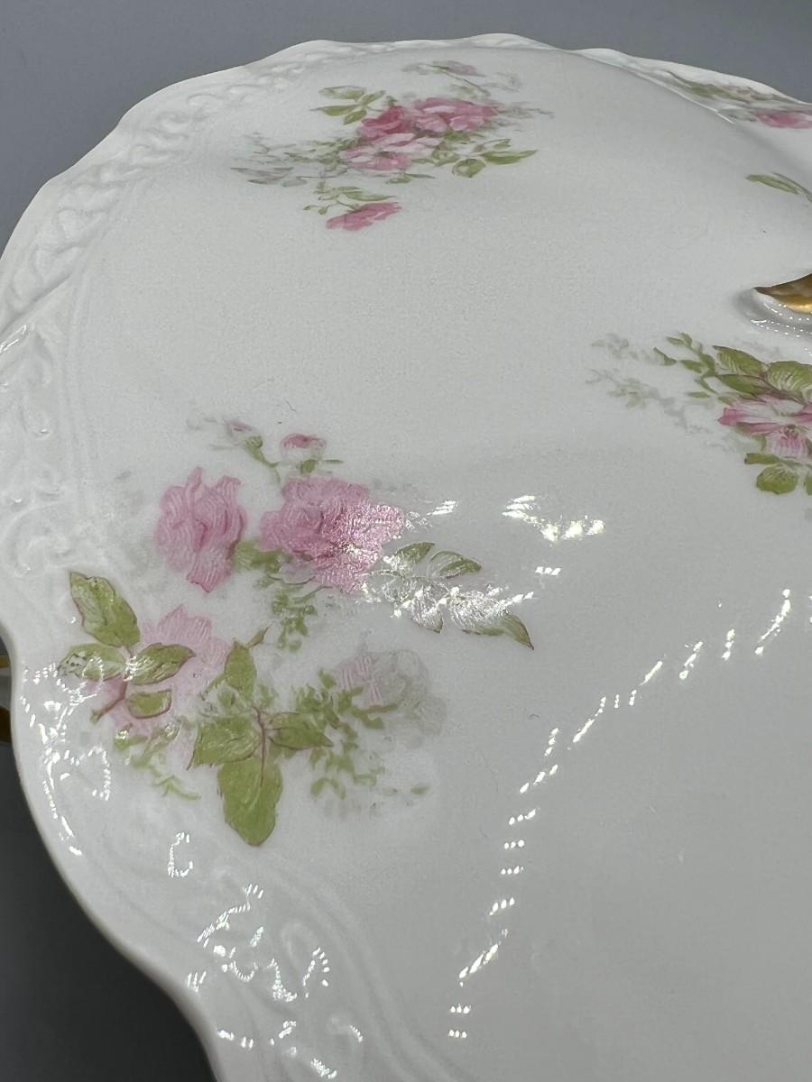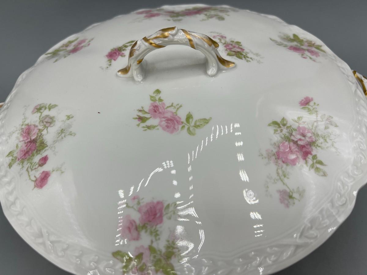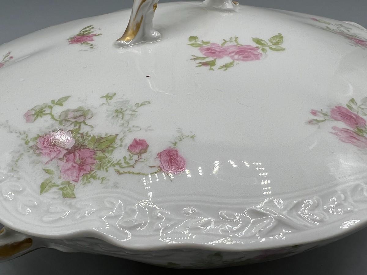 Antique Vintage Limoges France Pink Rose Double Handled Lidded Casserole Serving Dish