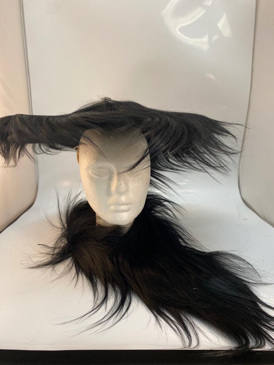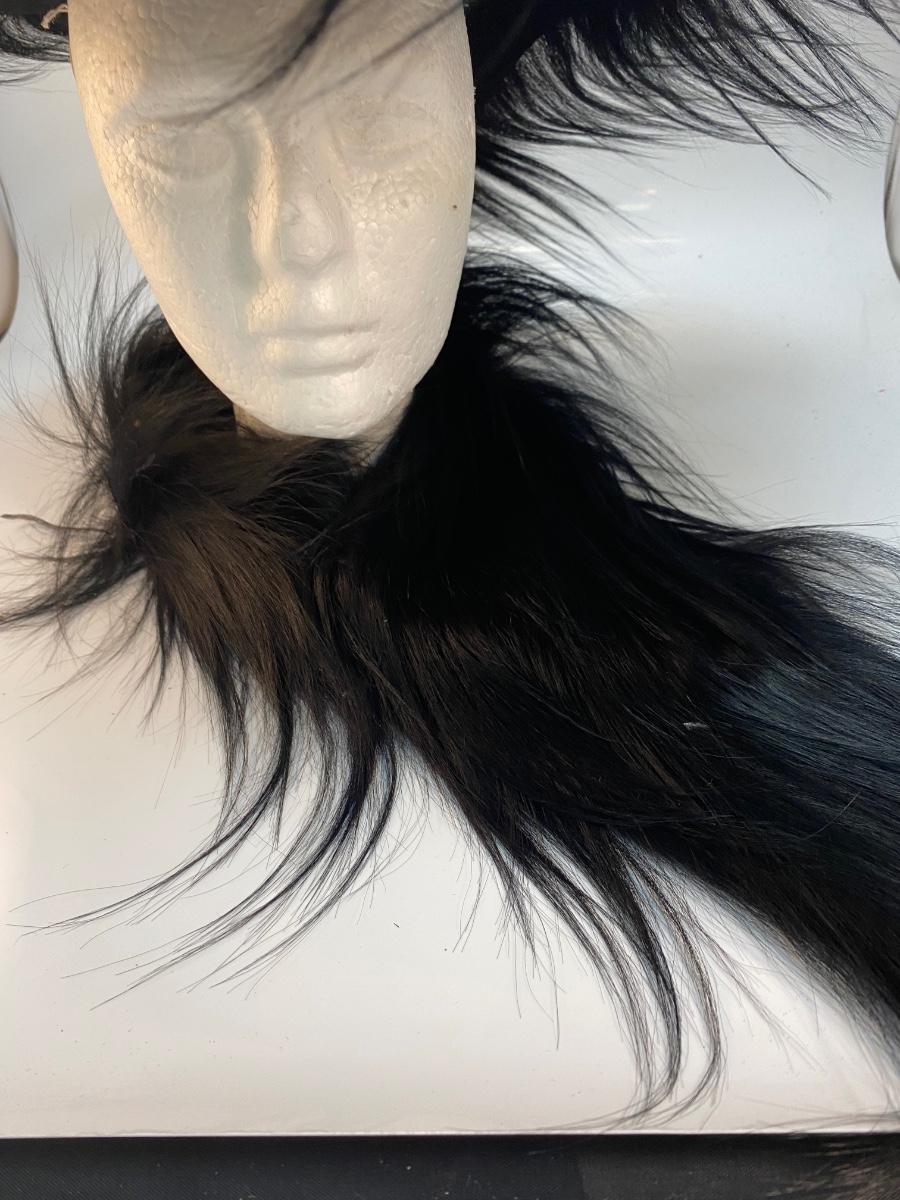 Antique Vintage Linder's Custom Hat Shop Black Monkey Fur 1920s Wide Brim Hat & Collar. Real fur, very soft, online research has it as monkey fur. Hat and collar are both in good antique condition. Collar is loose fitting and can be worn sitting at different angles, has a single snap closure.