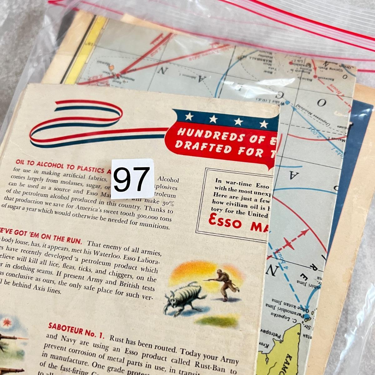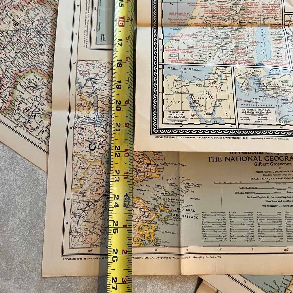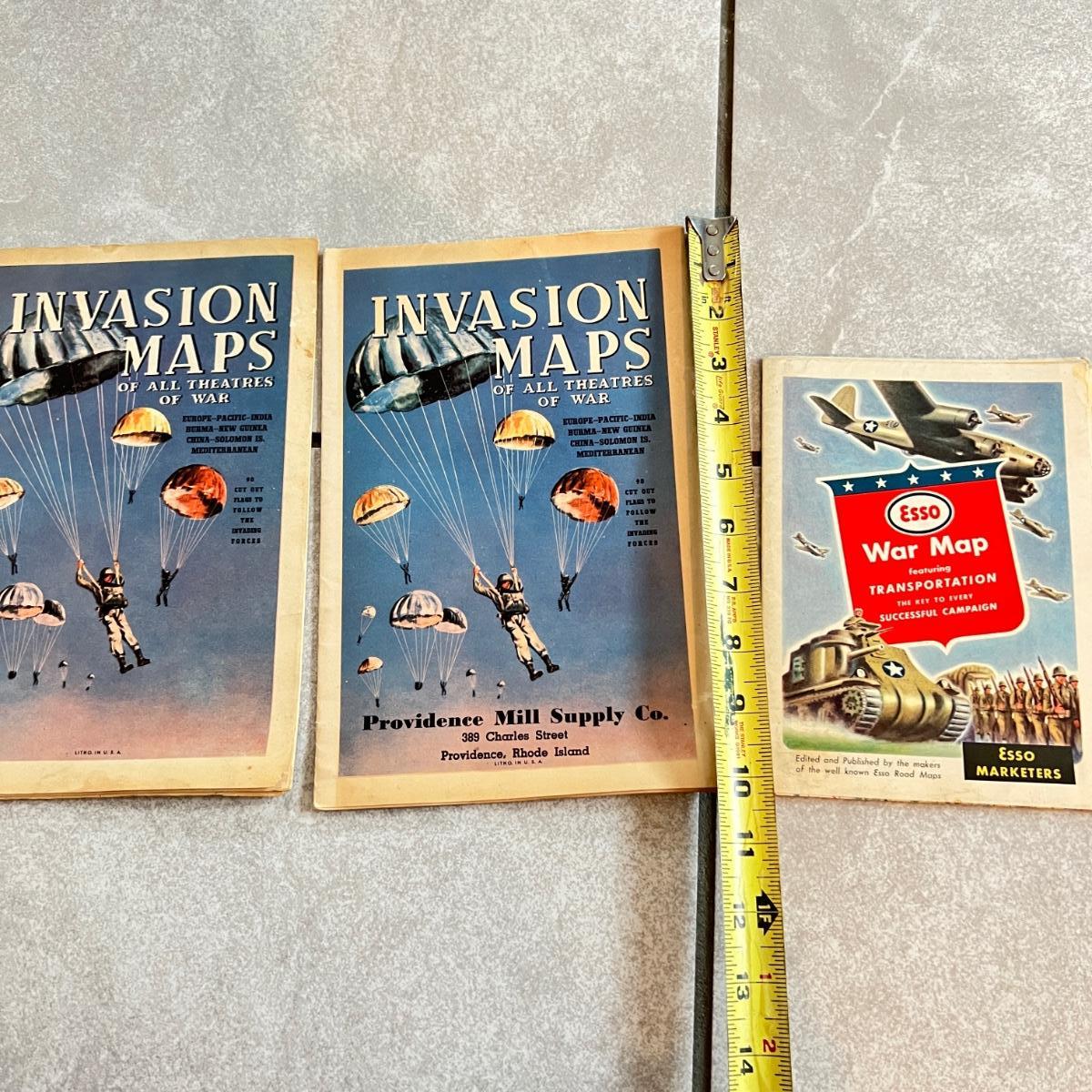 Lot of National Geographic 1945 and 1946 maps, Esso war map, 2 Invasion Maps, advertising sewing kits from Wonder Bread, A&P and more.