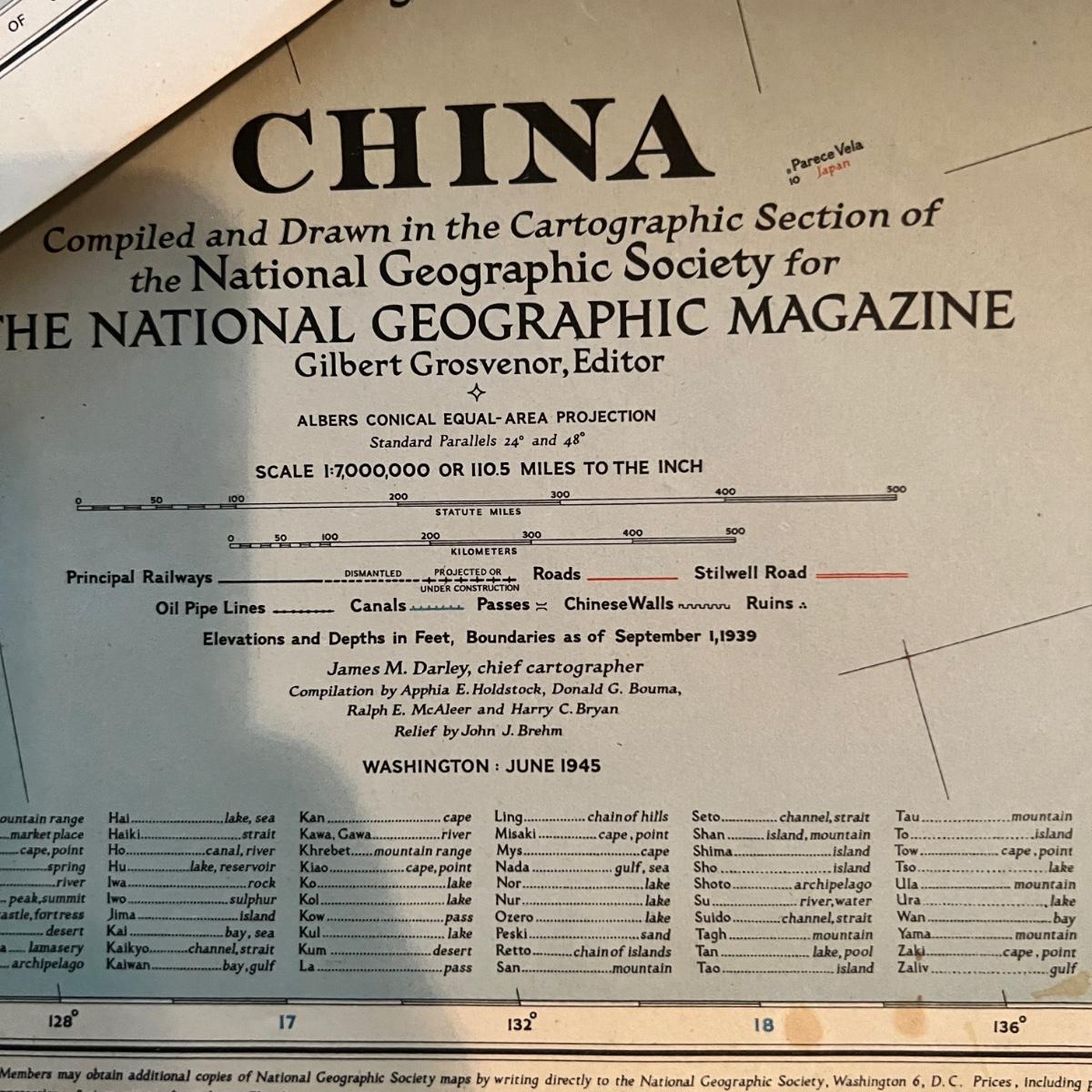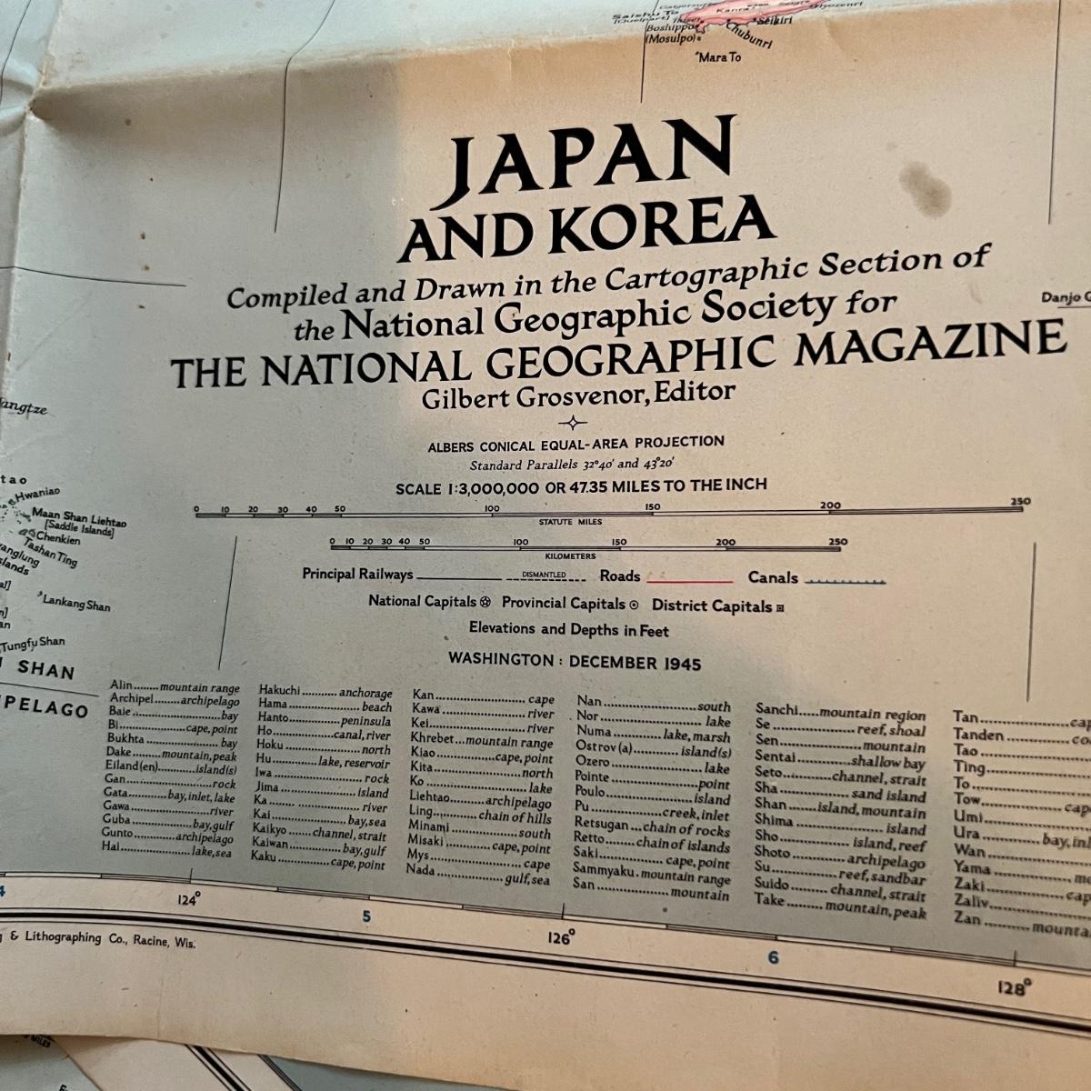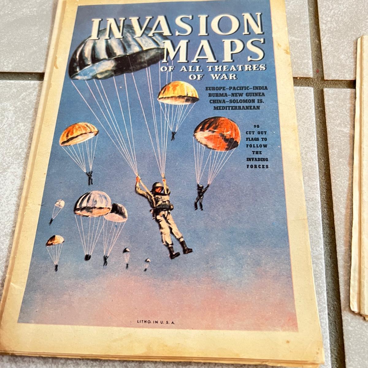 Lot of National Geographic 1945 and 1946 maps, Esso war map, 2 Invasion Maps, advertising sewing kits from Wonder Bread, A&P and more.