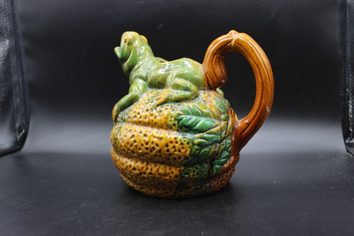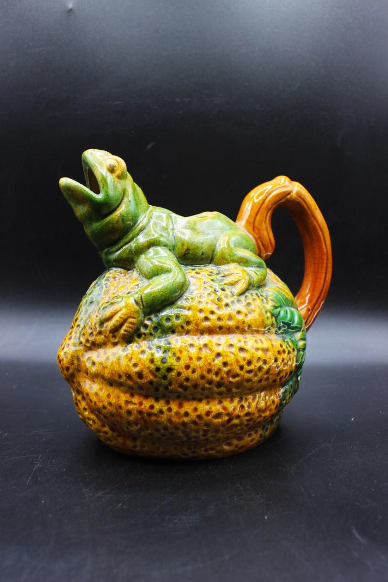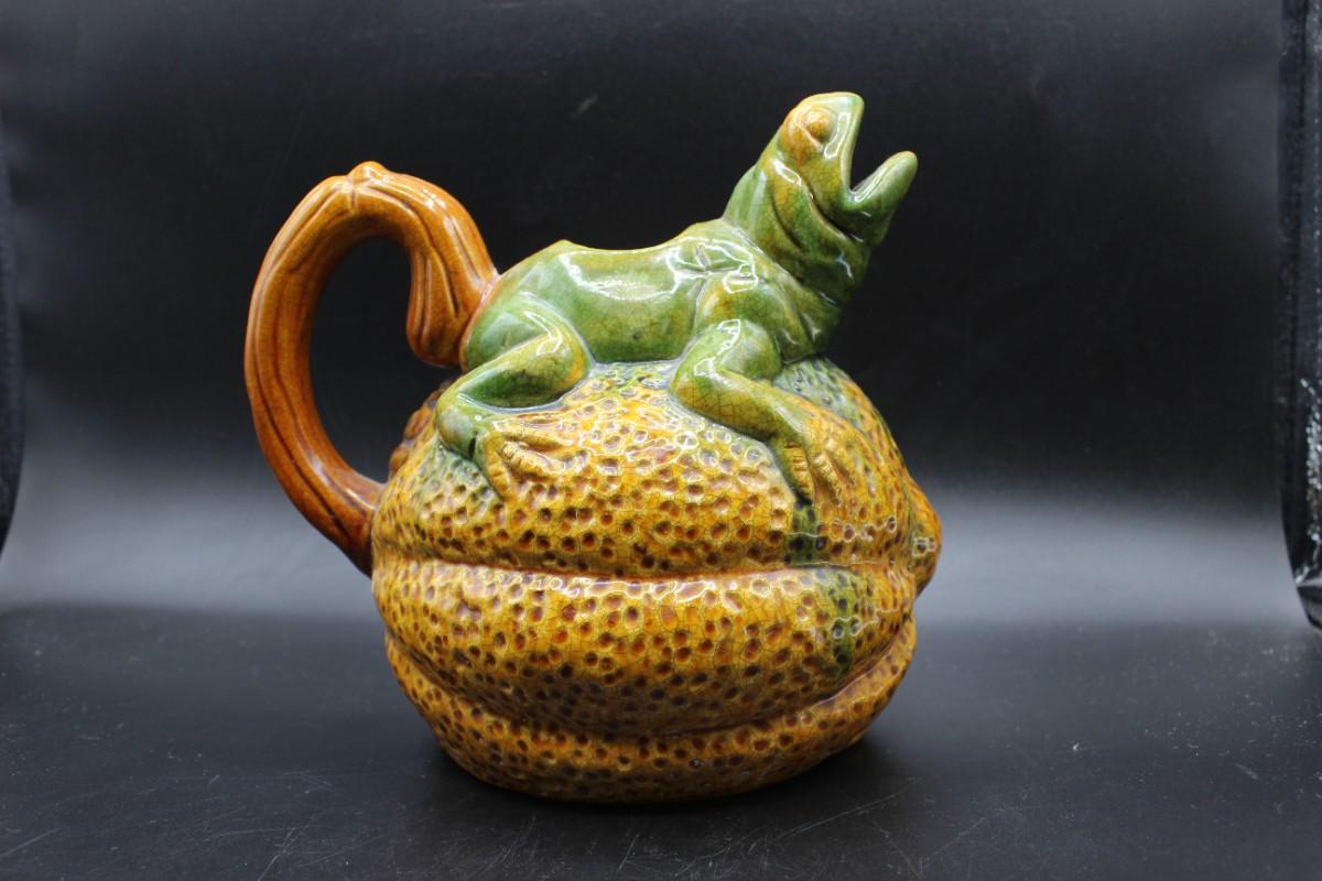 Antique Vintage Majolica Frog on Melon Decorative Water Pitcher