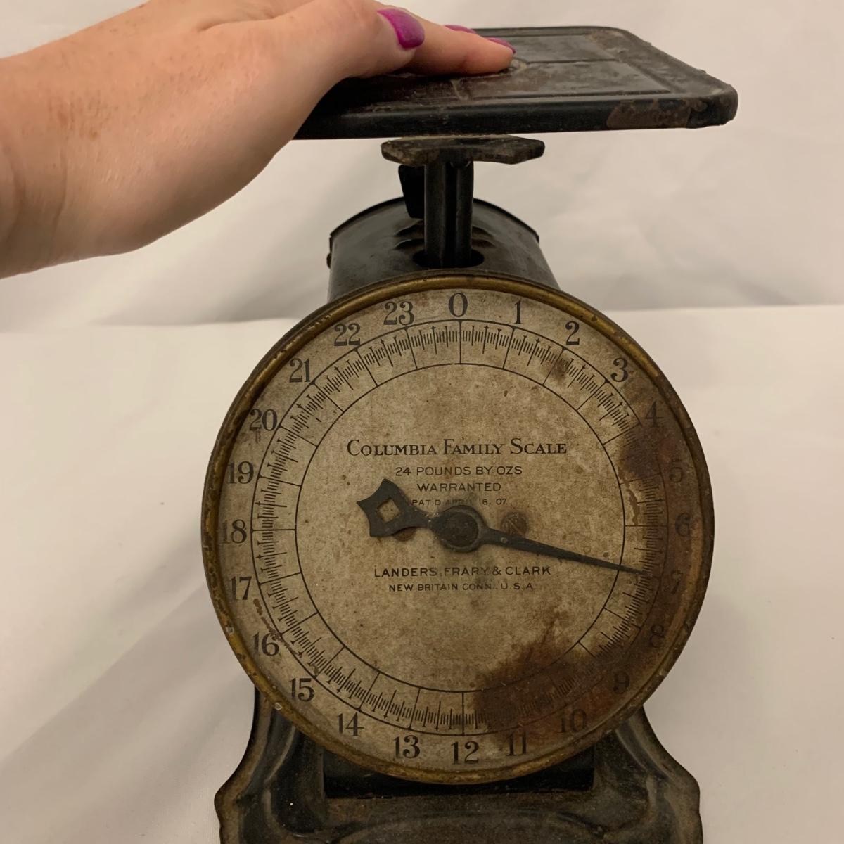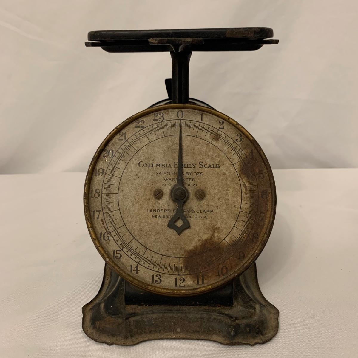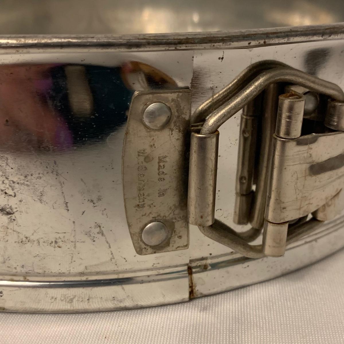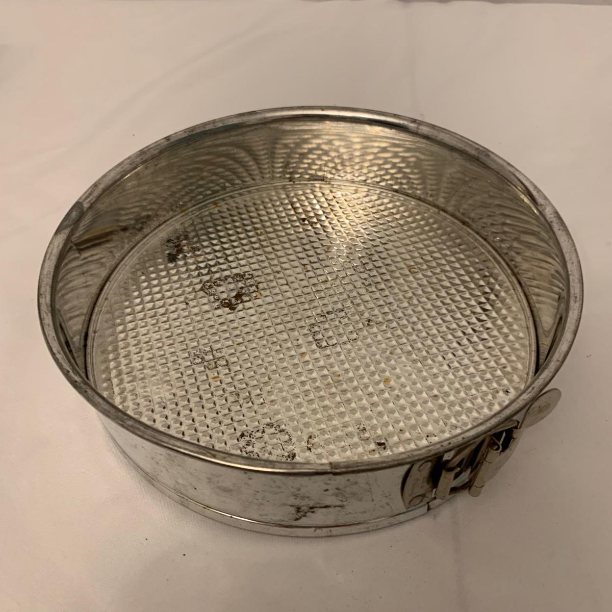 Fun collection of antique and vintage metal kitchen accessories. Includes an antique Columbia Family Scale as well as vintage Bromwell’s measuring sifters, cake pans, cookie press, ice cube tray, and more. The scale measures 8.5” tall. It is dusty and stained, but still functions. The springform pan is 10.25”D. The Fancy Pastry Decorating Set appears to be unused. See photos for conditions of all items. Shipping available.