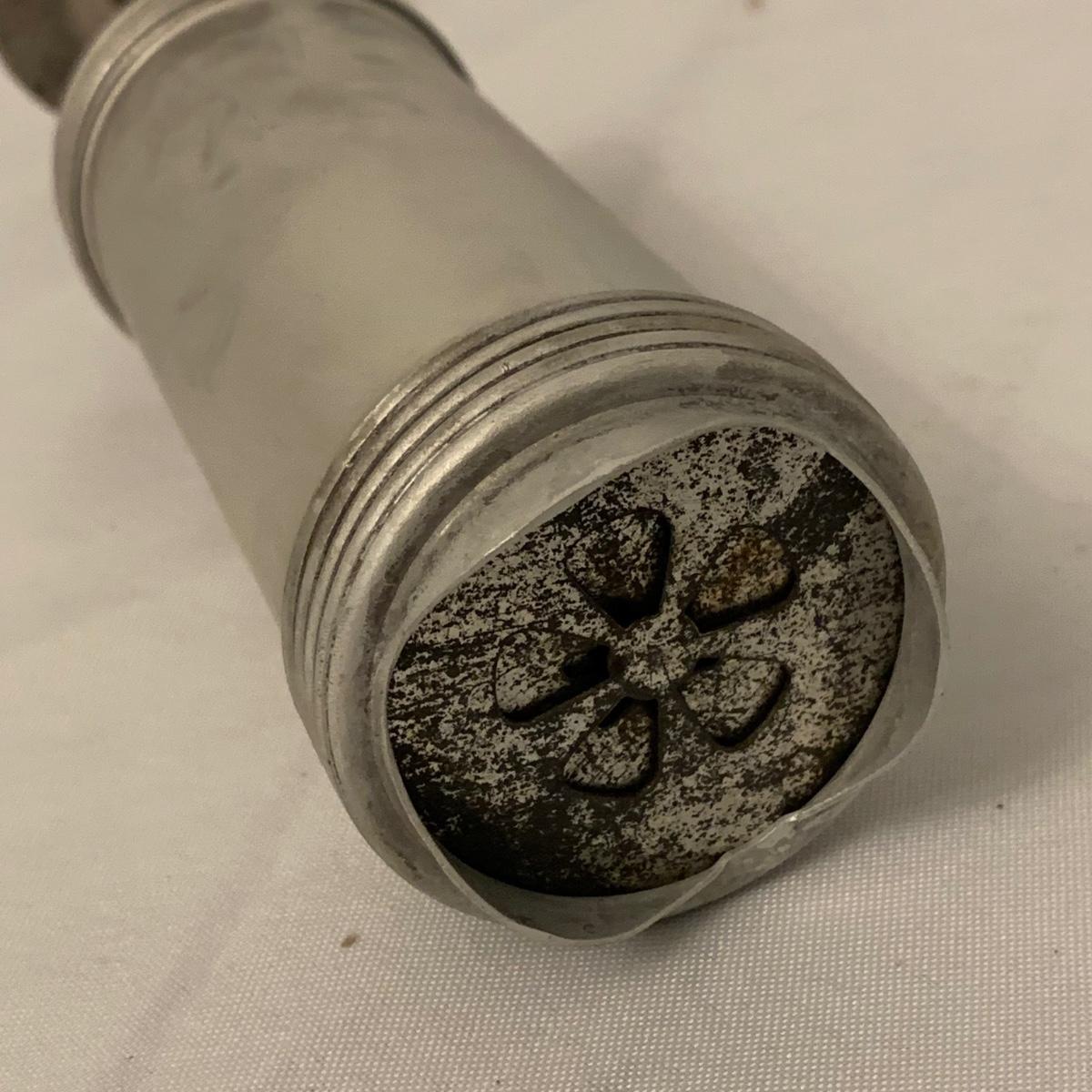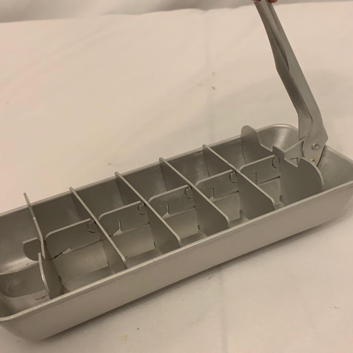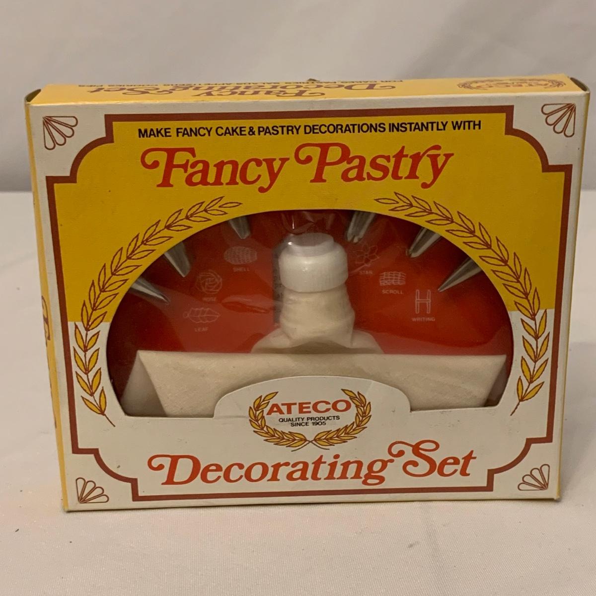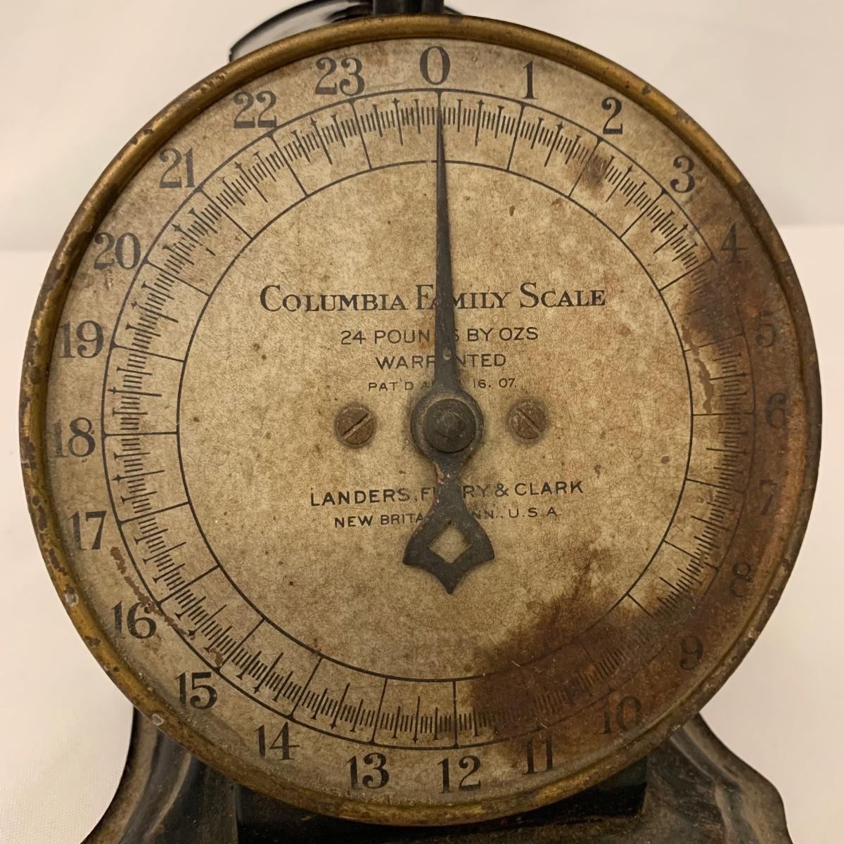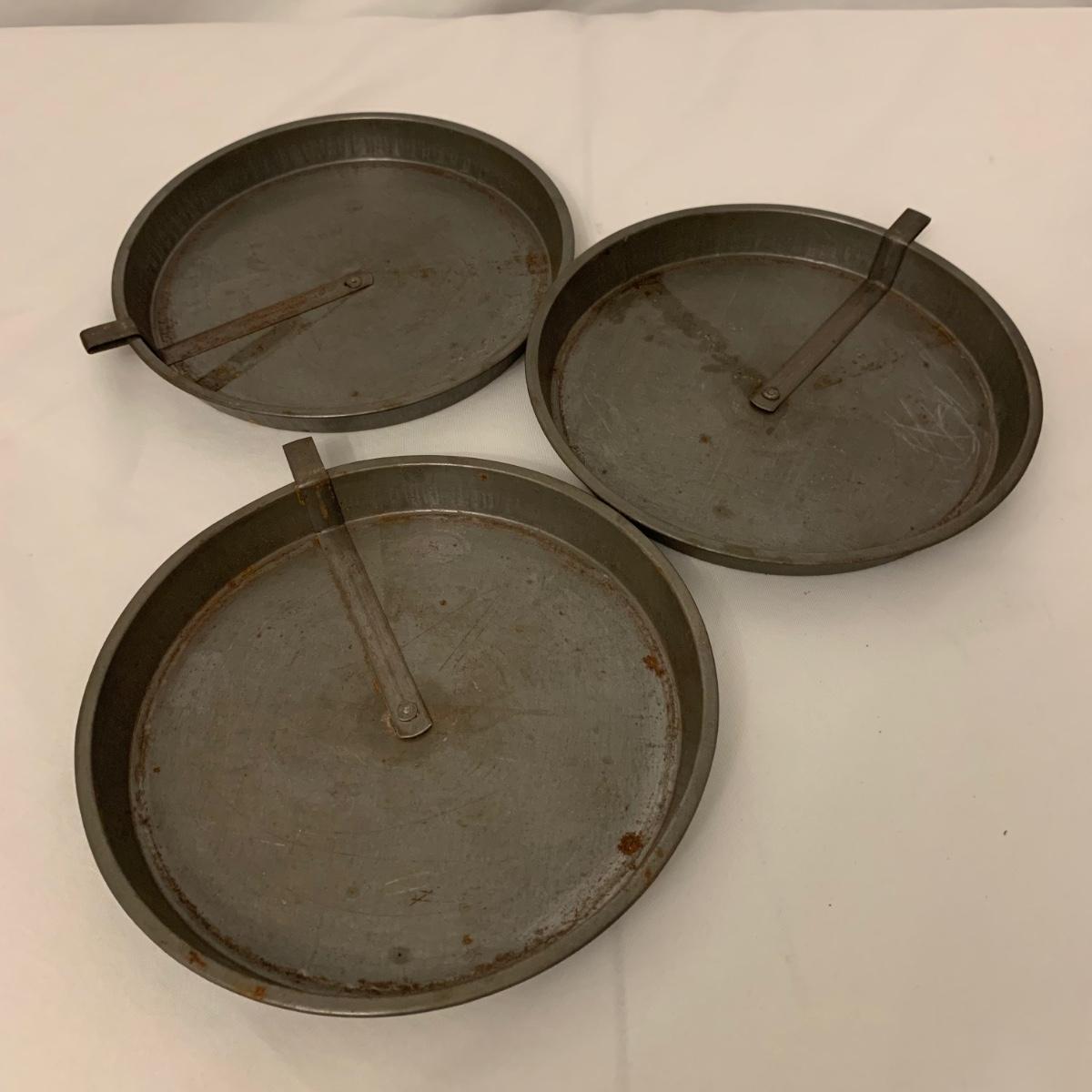 Fun collection of antique and vintage metal kitchen accessories. Includes an antique Columbia Family Scale as well as vintage Bromwell’s measuring sifters, cake pans, cookie press, ice cube tray, and more. The scale measures 8.5” tall. It is dusty and stained, but still functions. The springform pan is 10.25”D. The Fancy Pastry Decorating Set appears to be unused. See photos for conditions of all items. Shipping available.