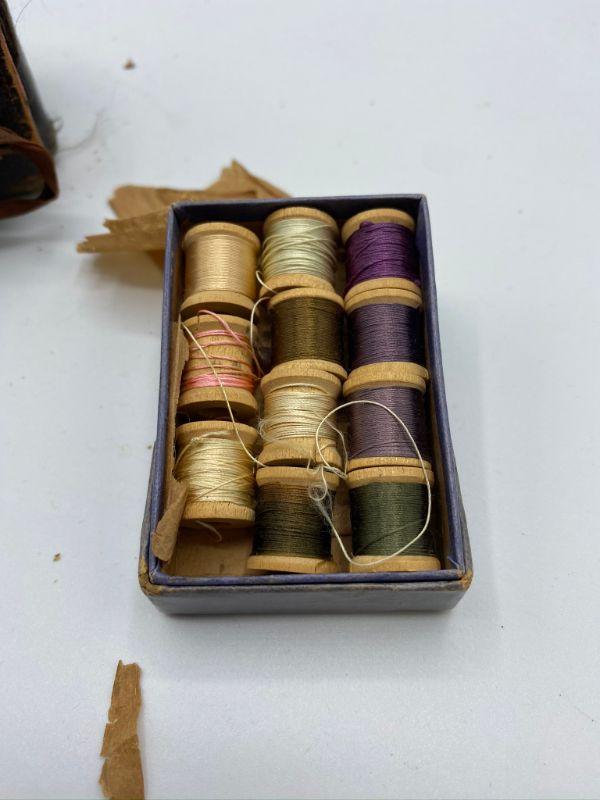 Antique Vintage Roll Up Sewing Kit and Mini Silk Thread Spools