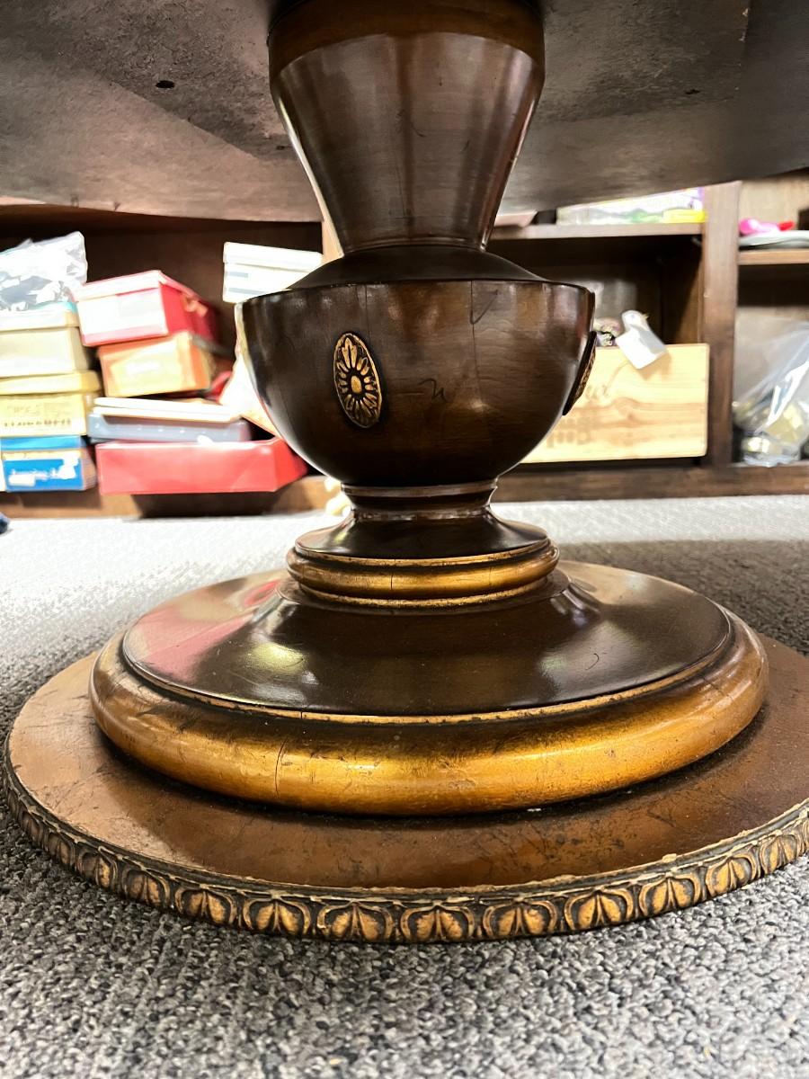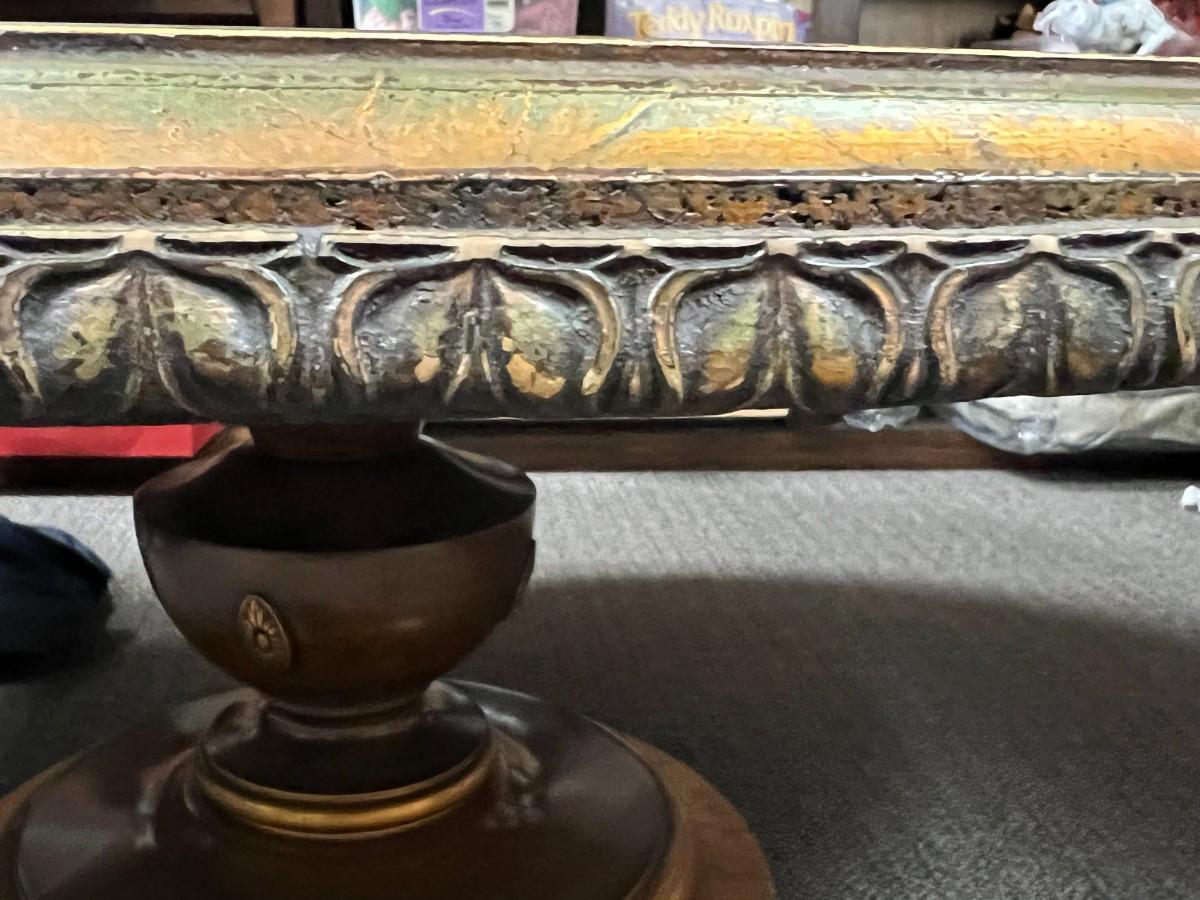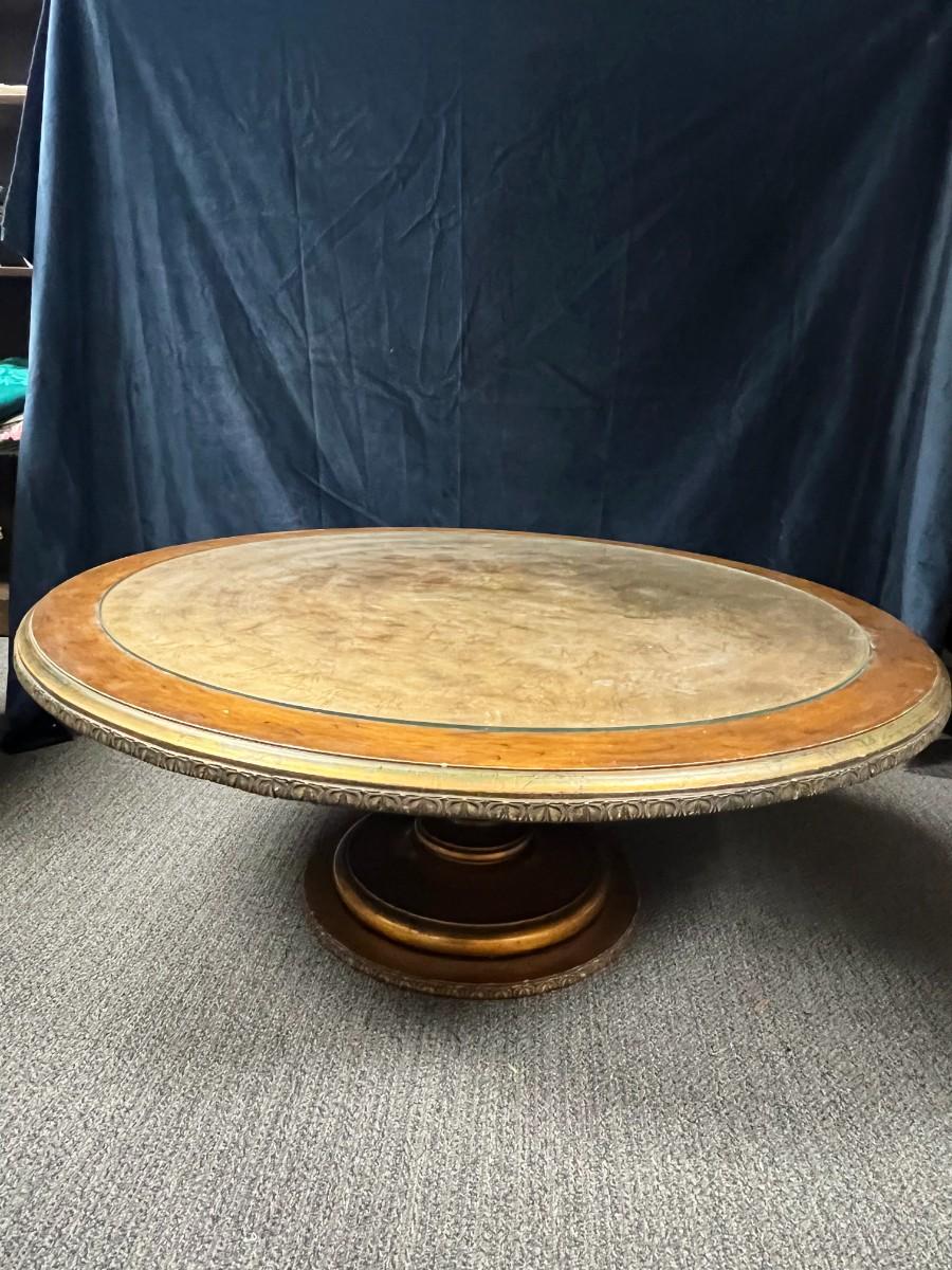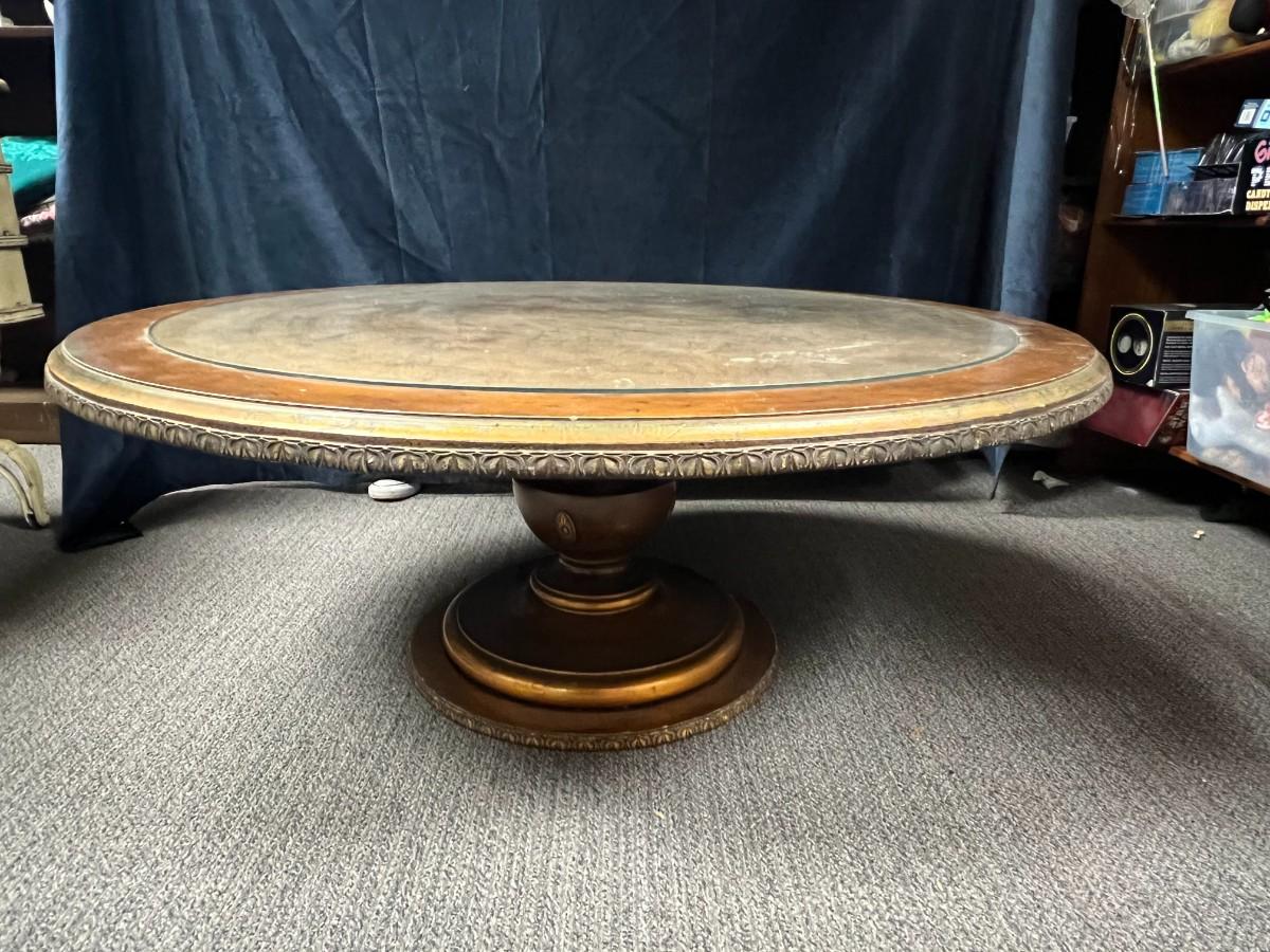 Antique Vintage Round Gold Leaf Under Glass Wood Pedestal Coffee Table