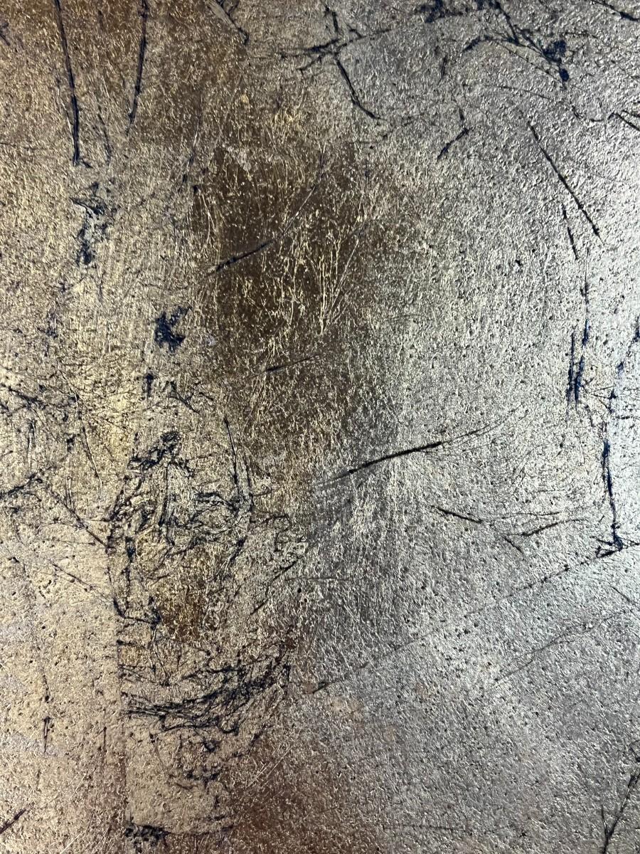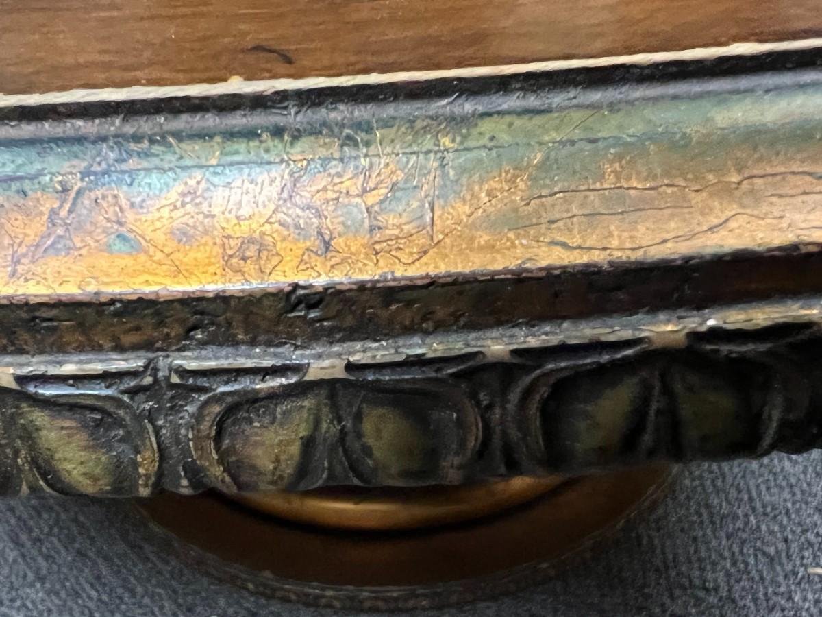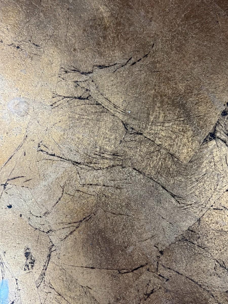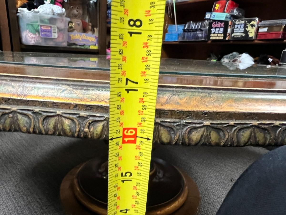 Antique Vintage Round Gold Leaf Under Glass Wood Pedestal Coffee Table