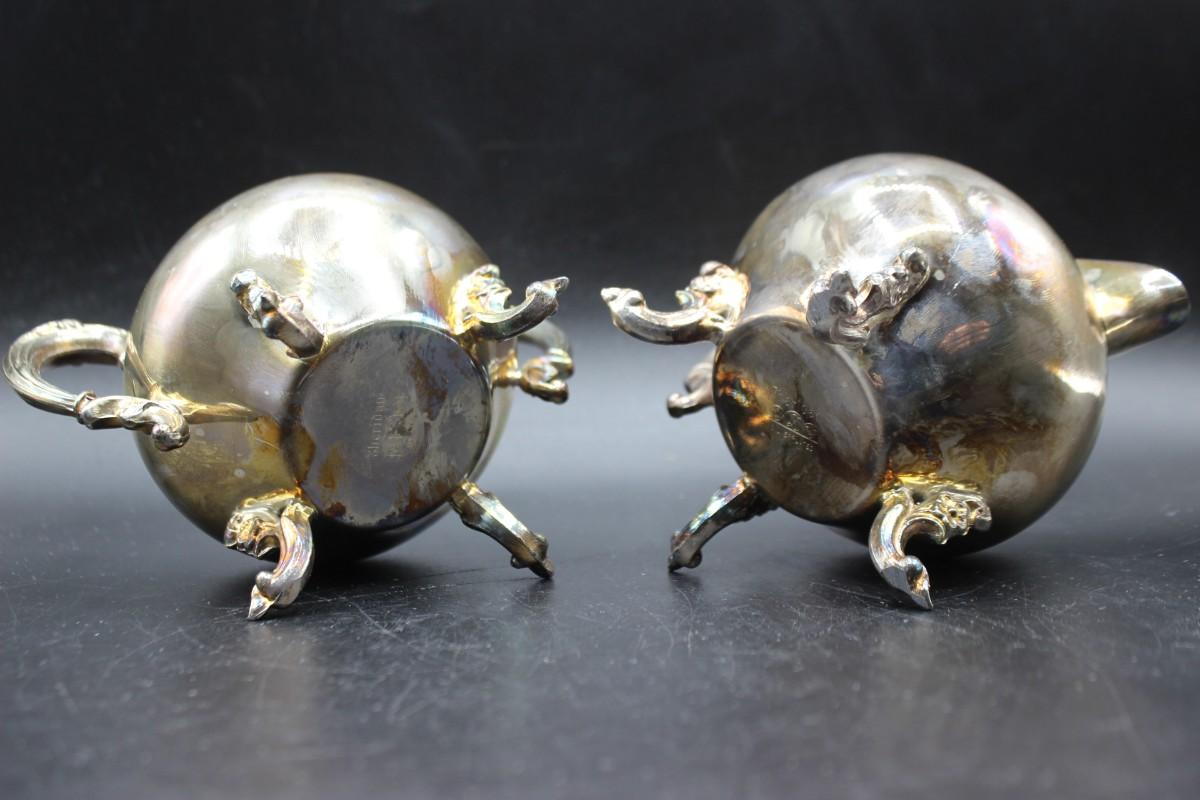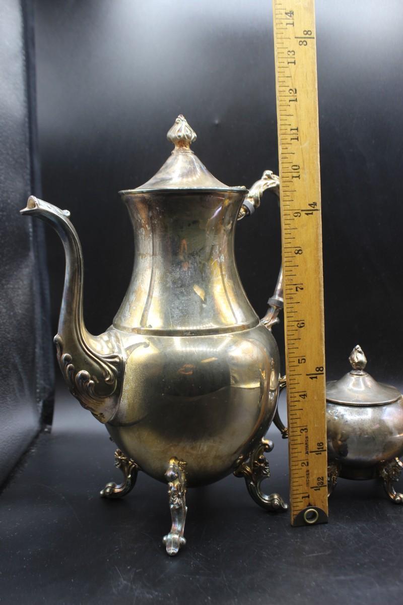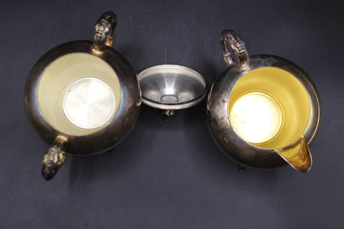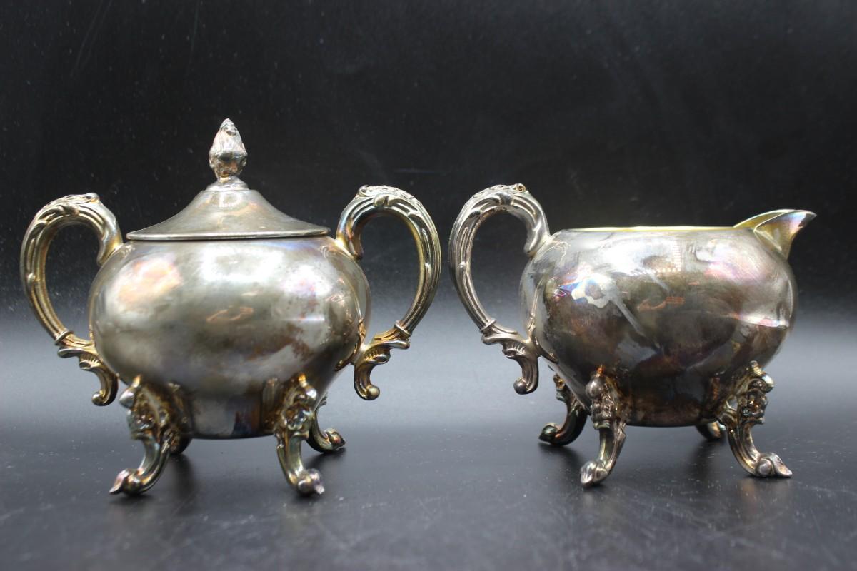 Antique Vintage Sheridan Silver Plate Three Piece Tea Set Pot Creamer Sugar Bowl
