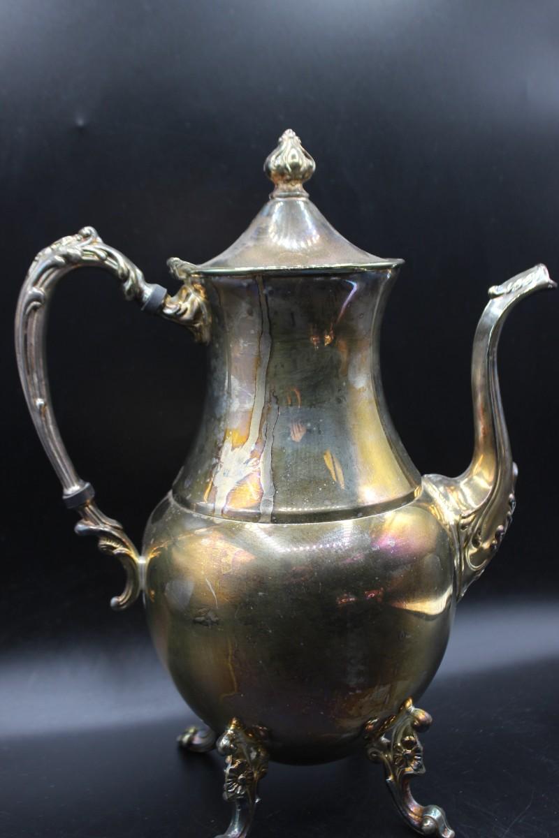 Sheridan silver plate tea set. Three pieces, a tea pot, creamer, and a sugar bowl. Good condition, need to be polished.