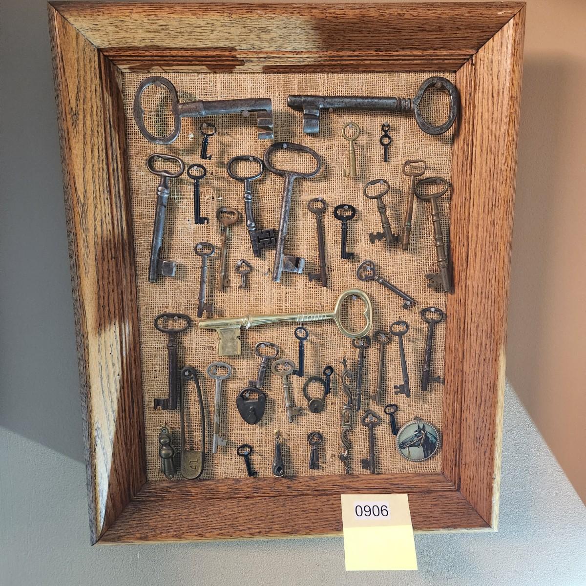 Antique & Vintage Skeleton Keys Framed Display 17x22