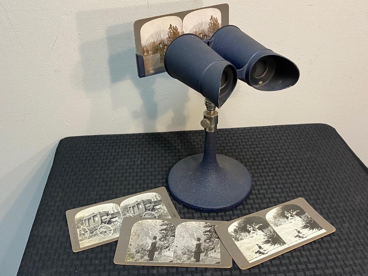 Antique Vintage Stereoscope Photograph Viewer with Stereoscope Type Photographs