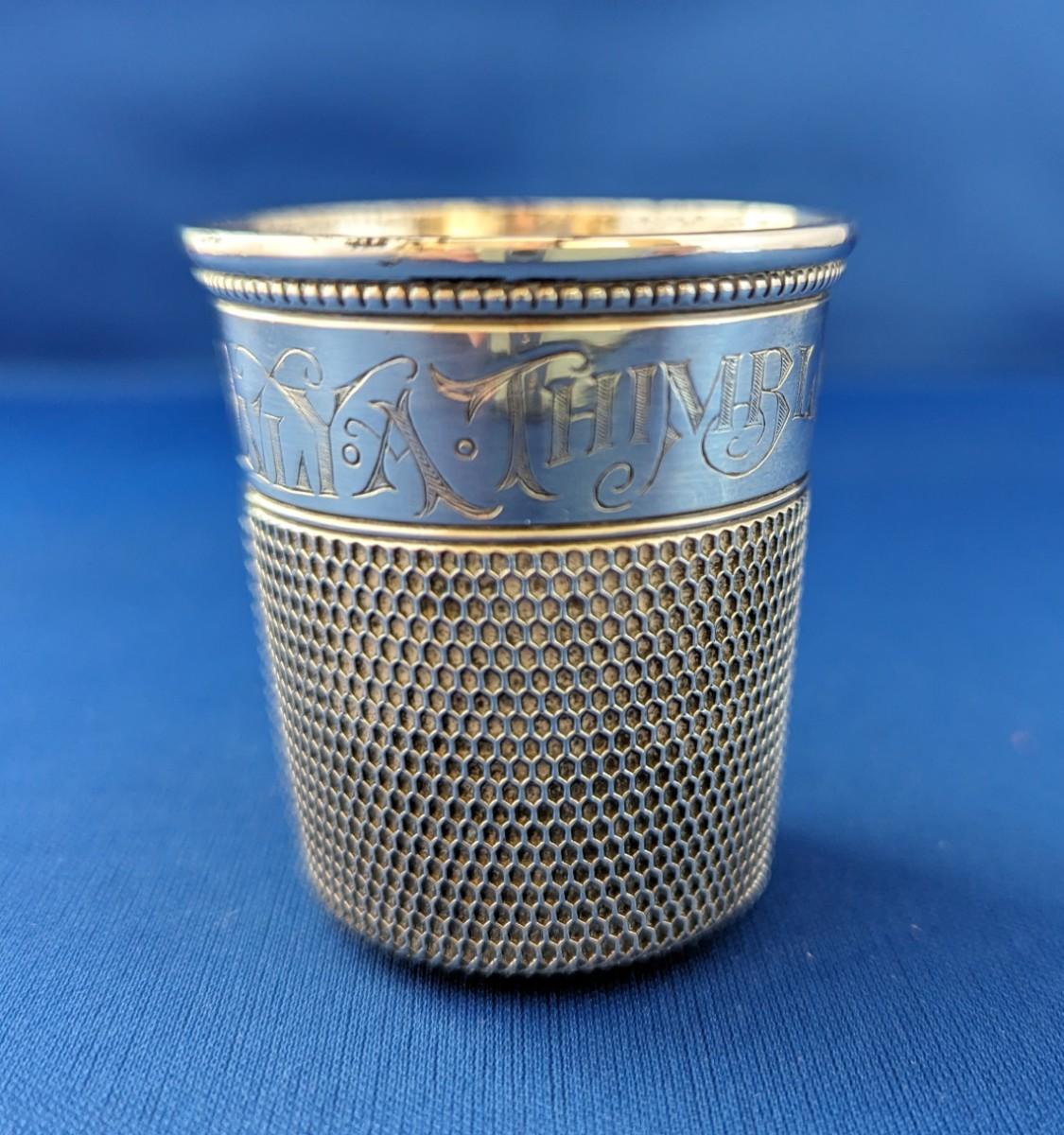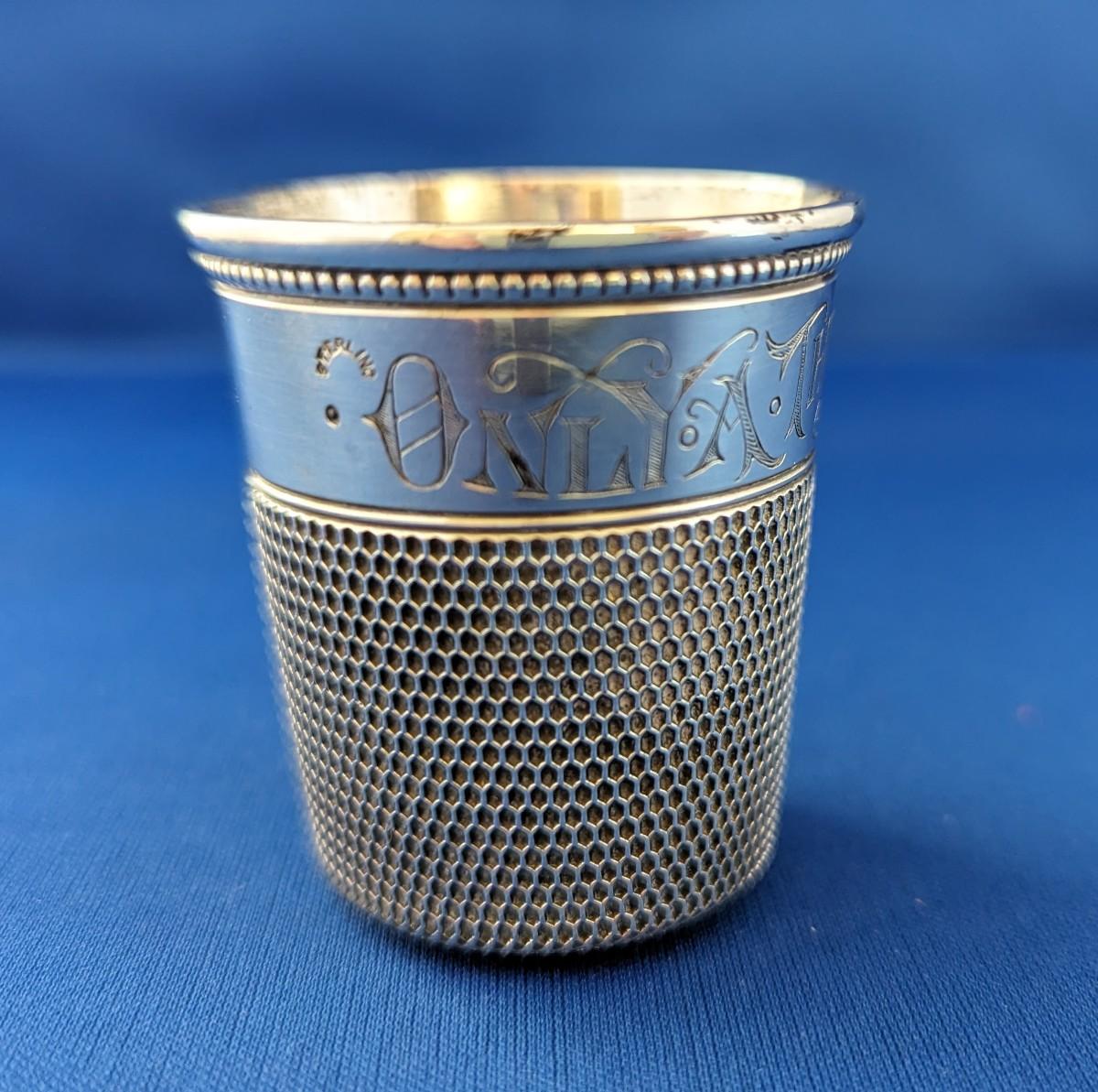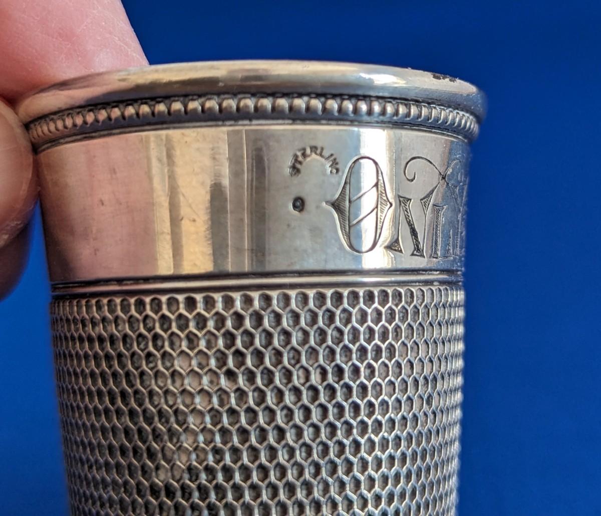 Antique Vintage Sterling Silver Thimble style jigger shot "Only a thimble full"