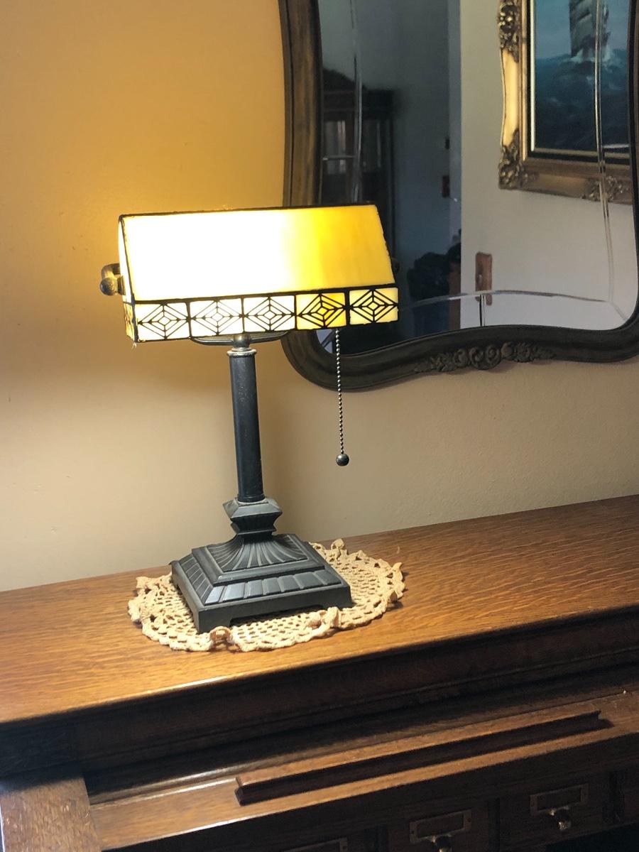 Antique Vintage Style Tiffany-inspired Art Deco Bankers Desk lamp