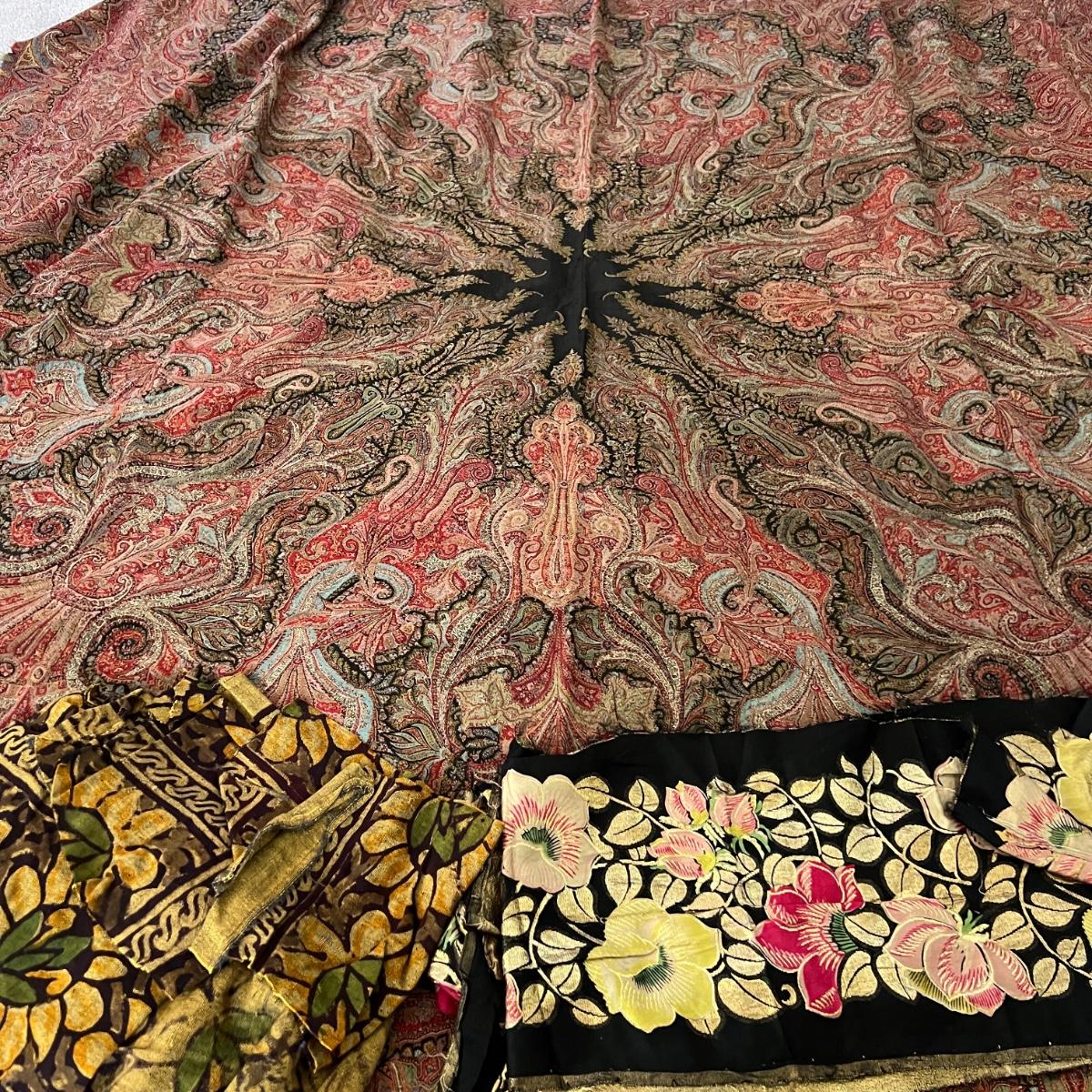 Antique Vintage Tapestry/Shawl + Material Scraps