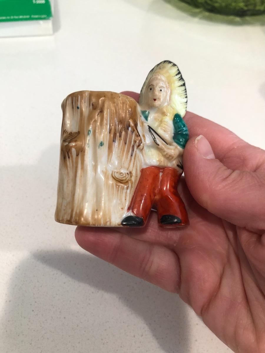 Antique Vintage Toothpick Holder Chalk Indian Made In Occupied Japan 2.5" Tall