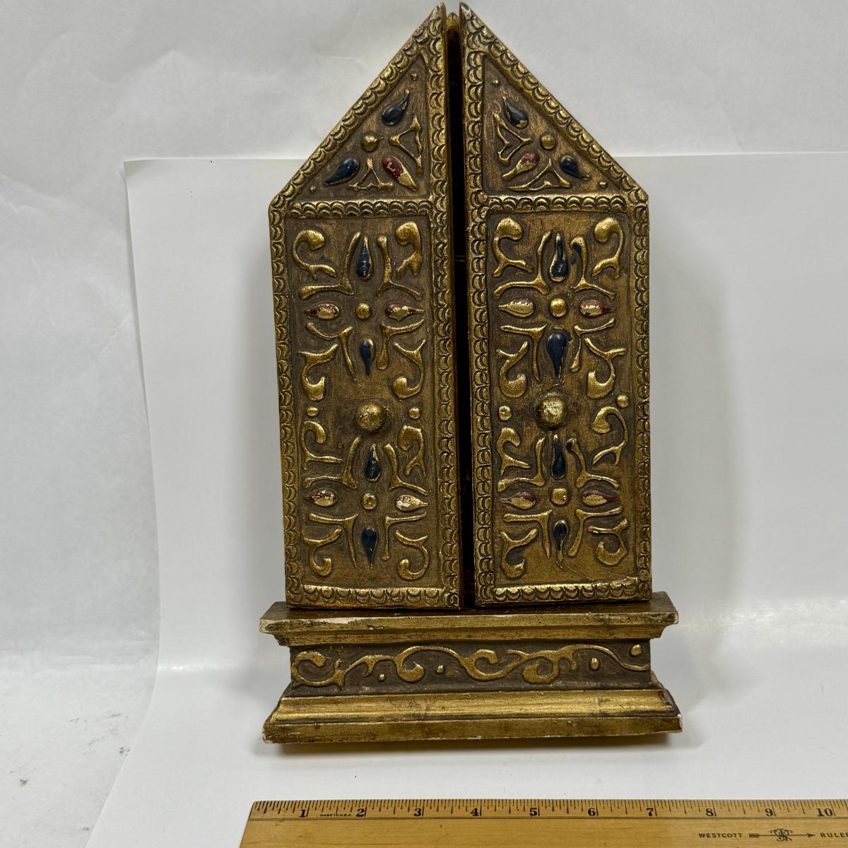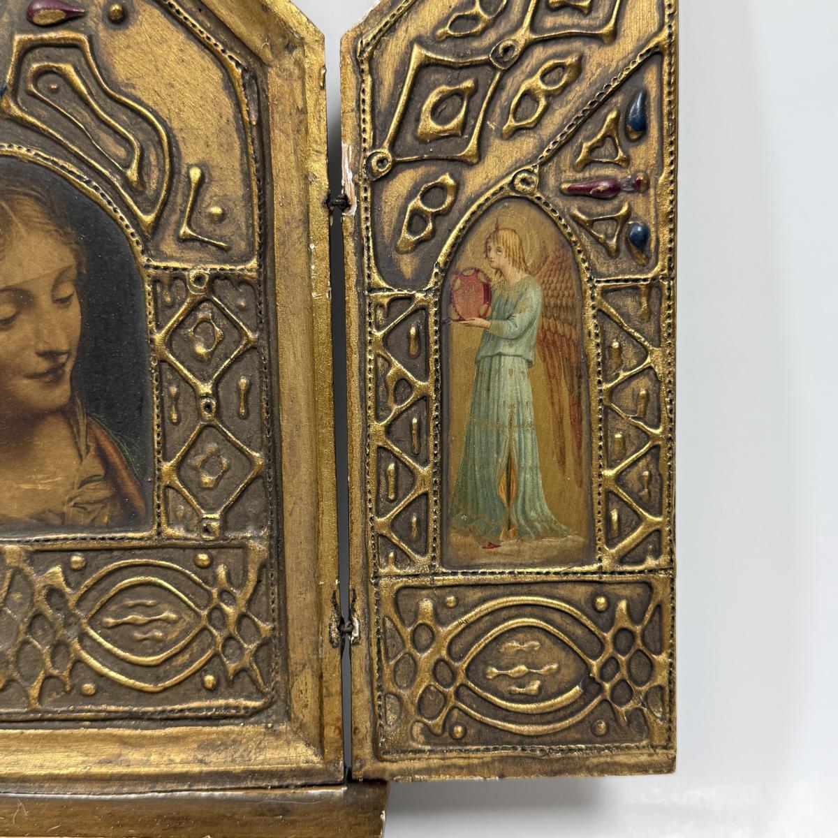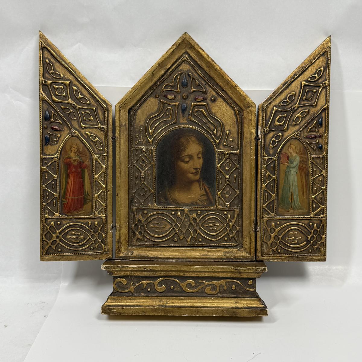 Antique Vintage Triptych - Florentine Gilded Wooden Icon, Madonna Virgin and Child, angels