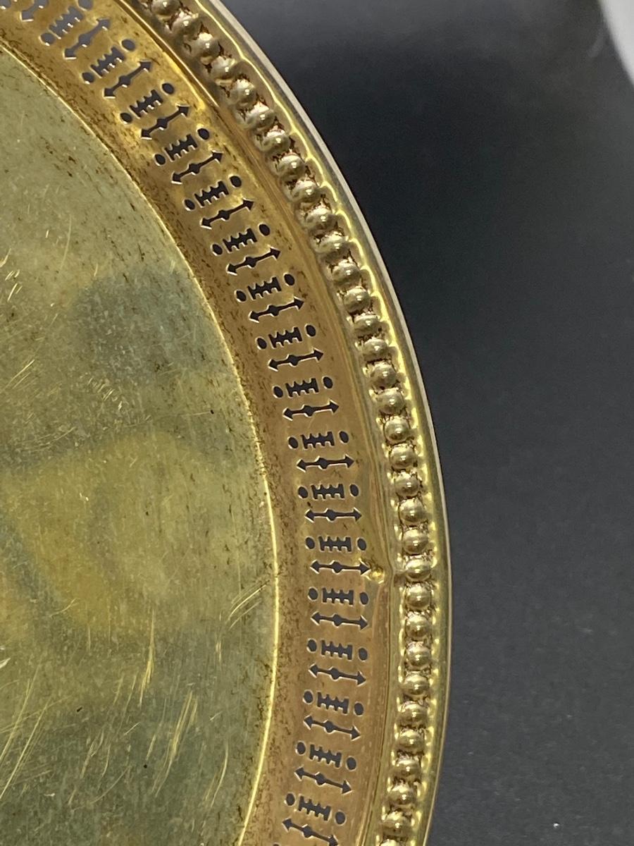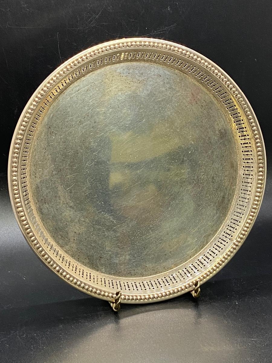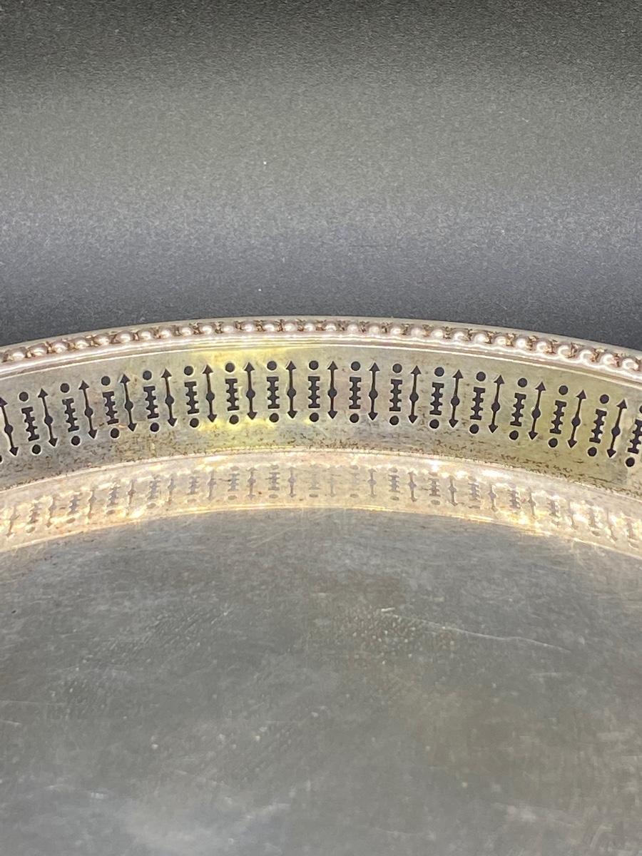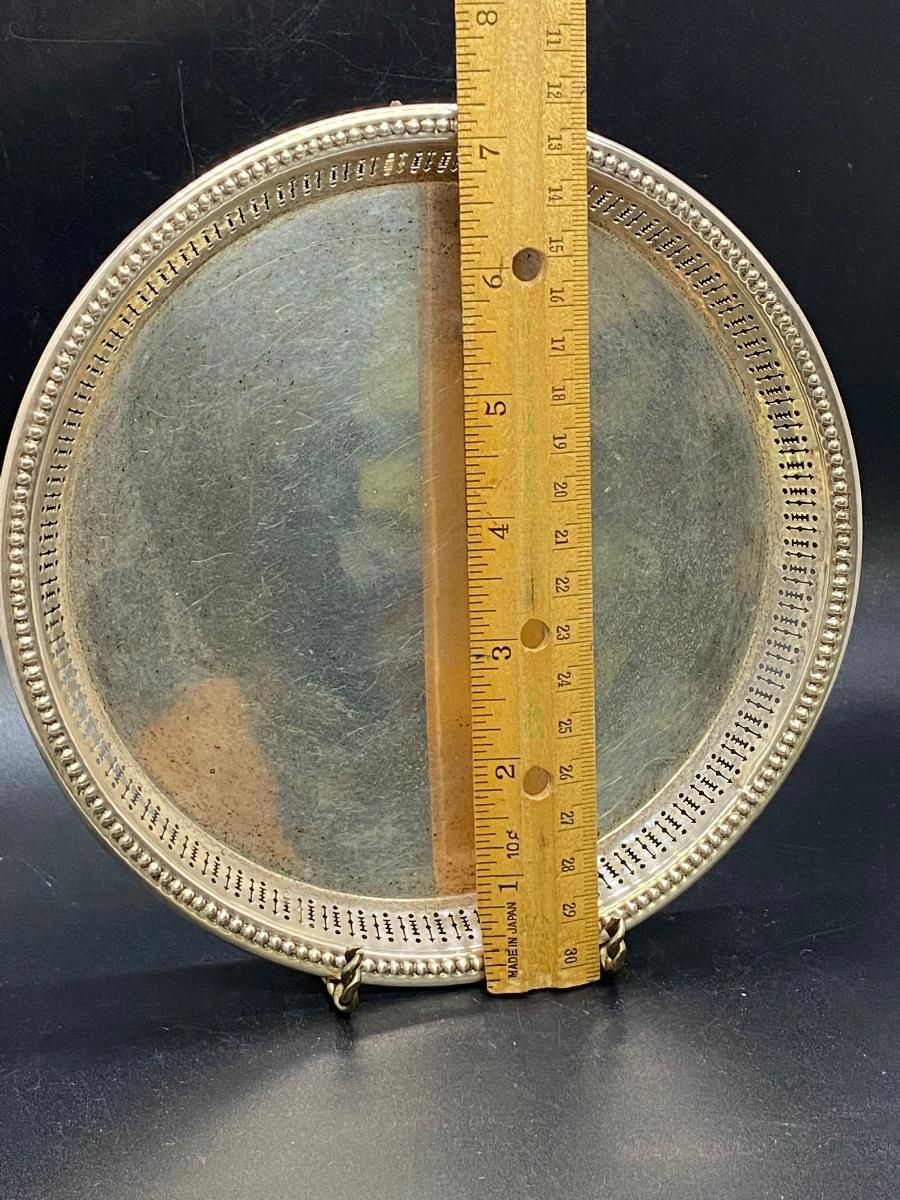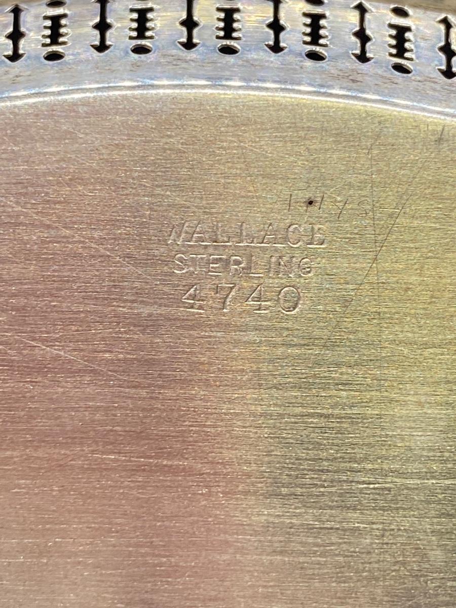 Wallace sterling silver 7.5" serving tray trinket plate. Open work edge. Marked on the bottom. 120g tw. Good condition, needs to be cleaned, no dents.